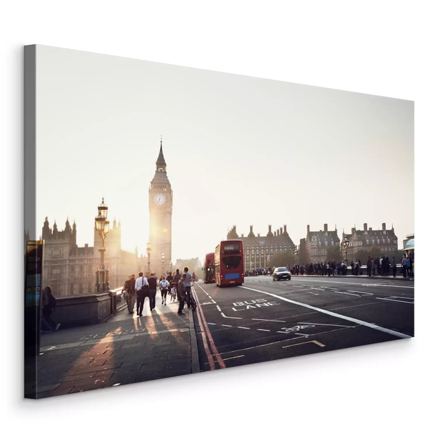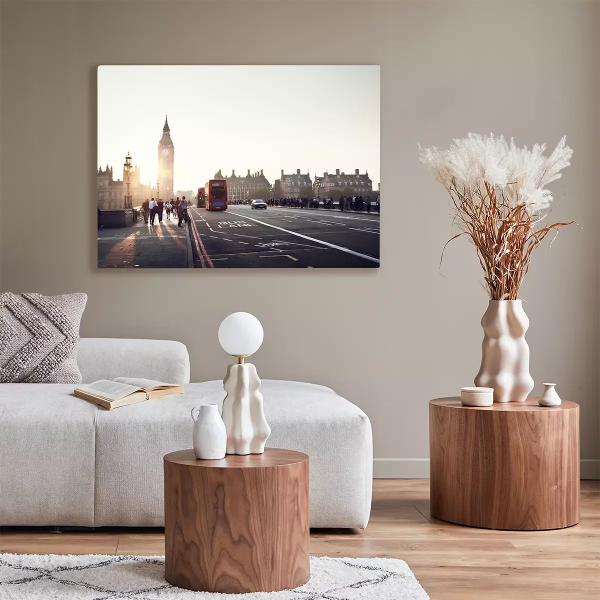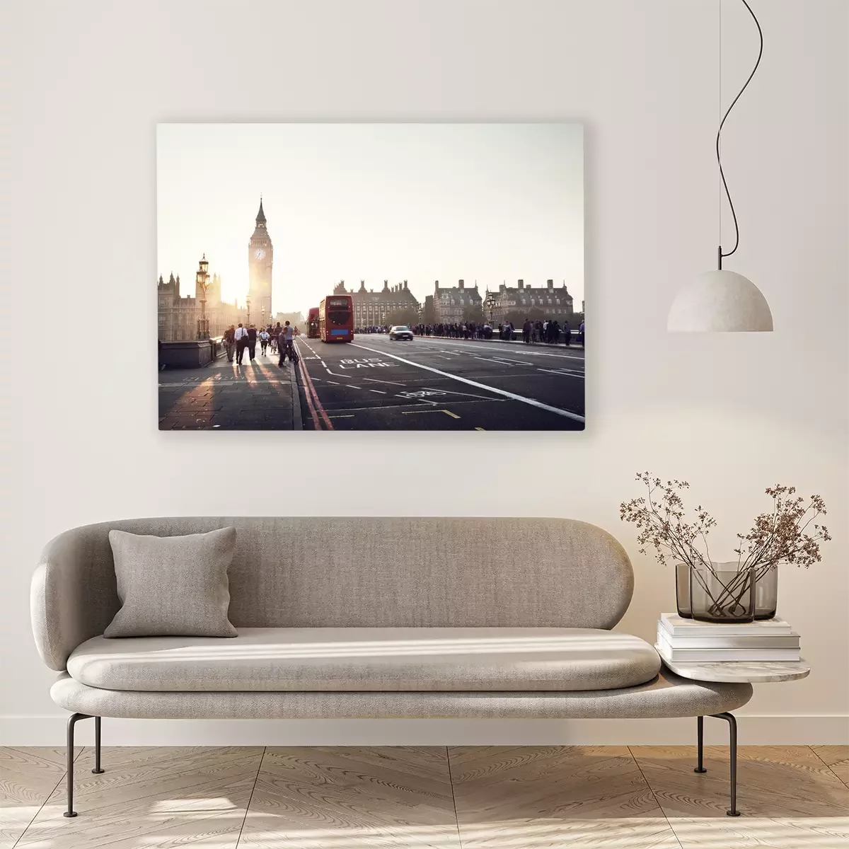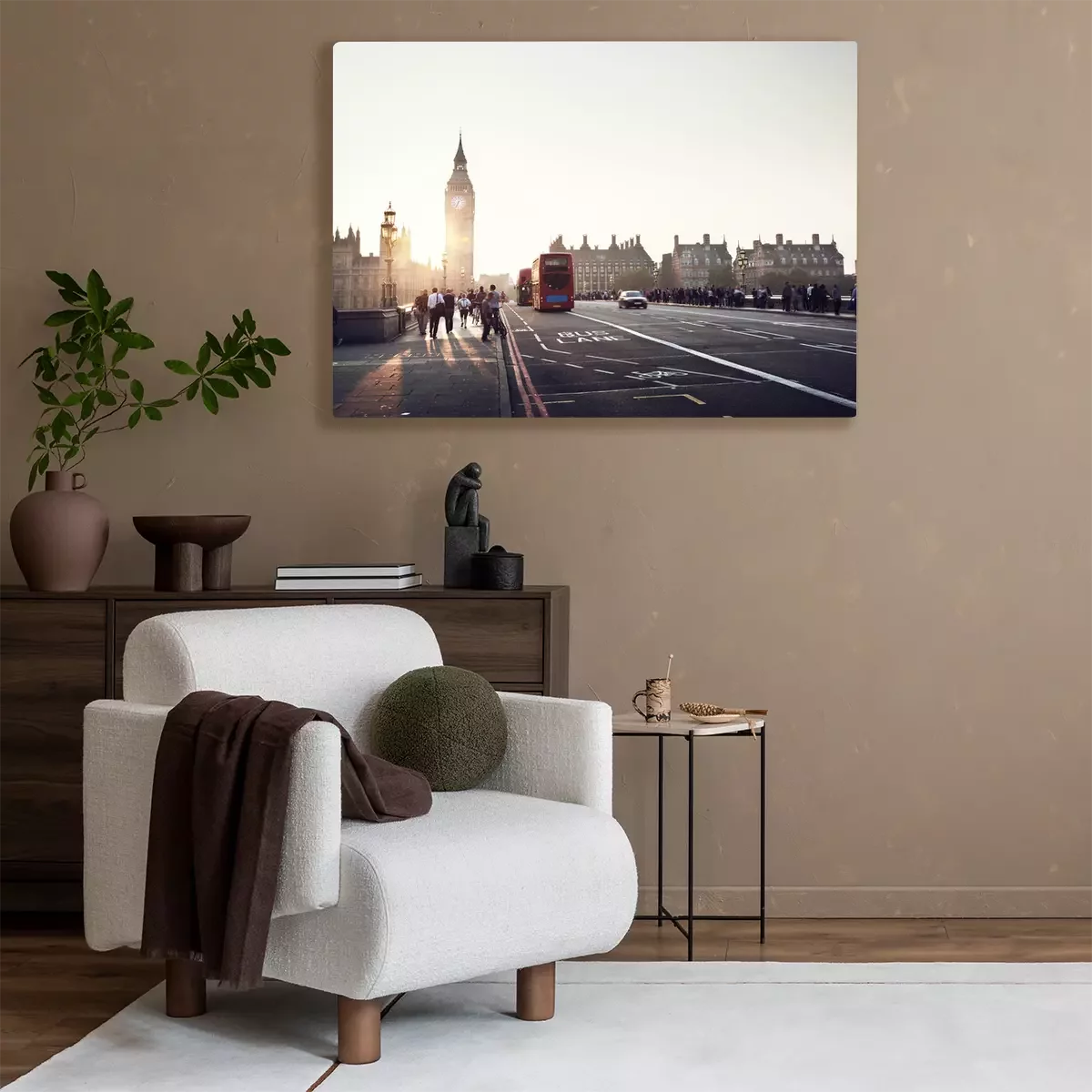 Tableau  personnes sur le pont de Westminster au coucher du soleil, Londres, Royaume-Uni