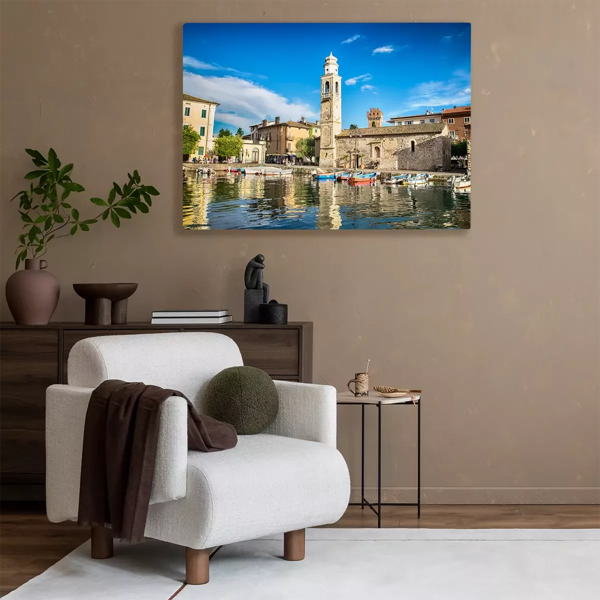 Tableau  Petit port romantique à Lazise au lac de Garde en Italie.