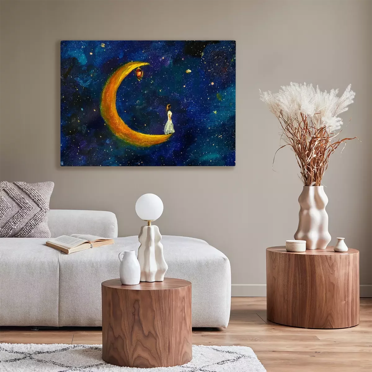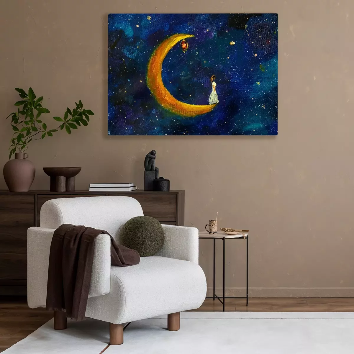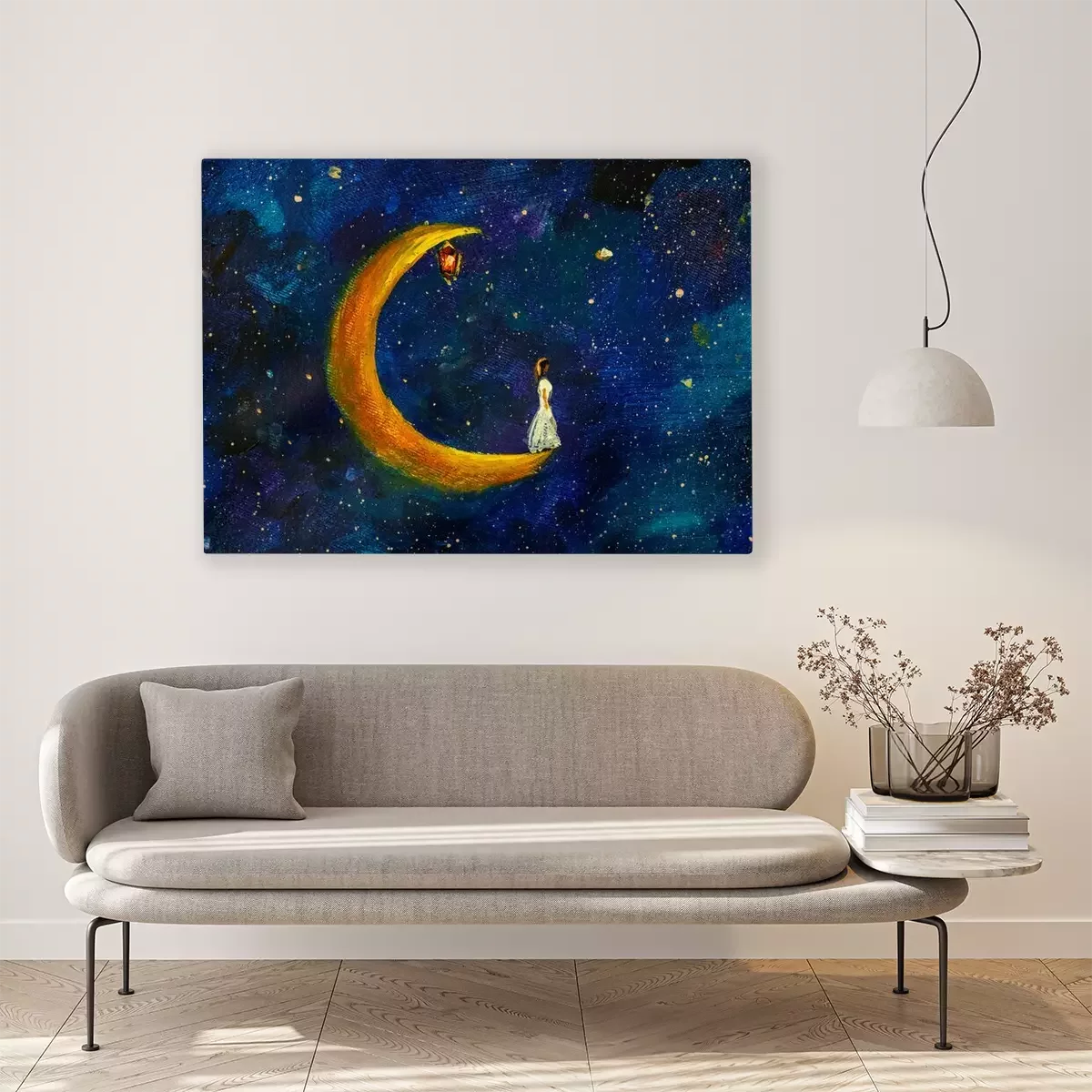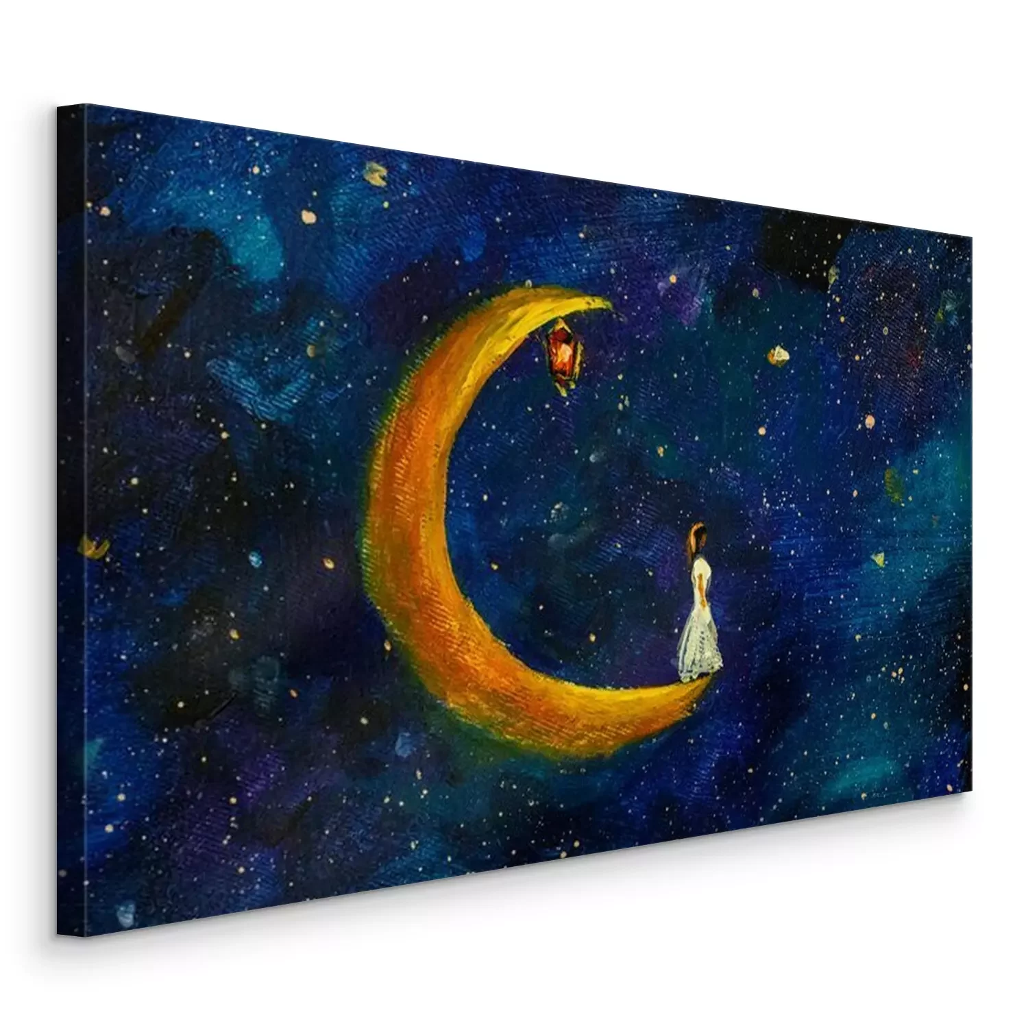 Tableau  Petite fille en robe blanche sur la Lune