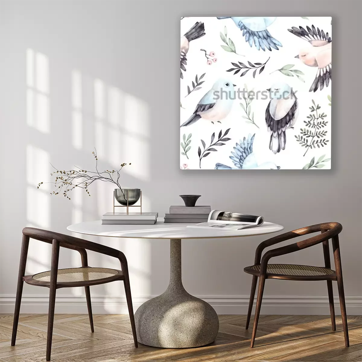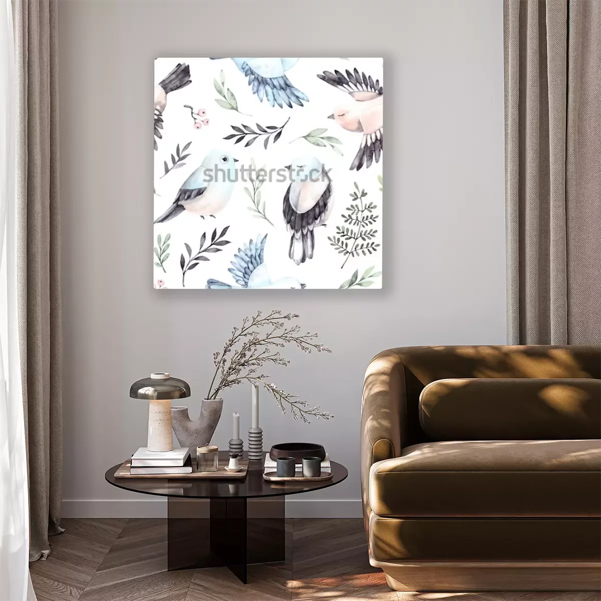 Tableau : Petits oiseaux parmi les feuilles
