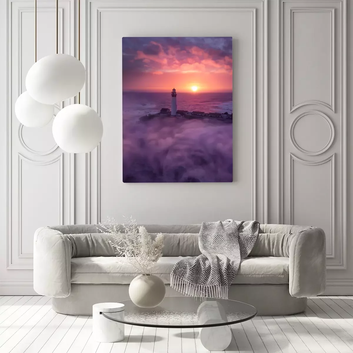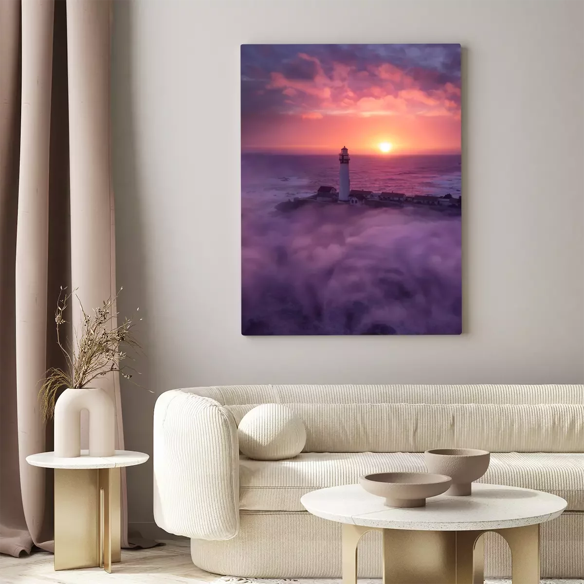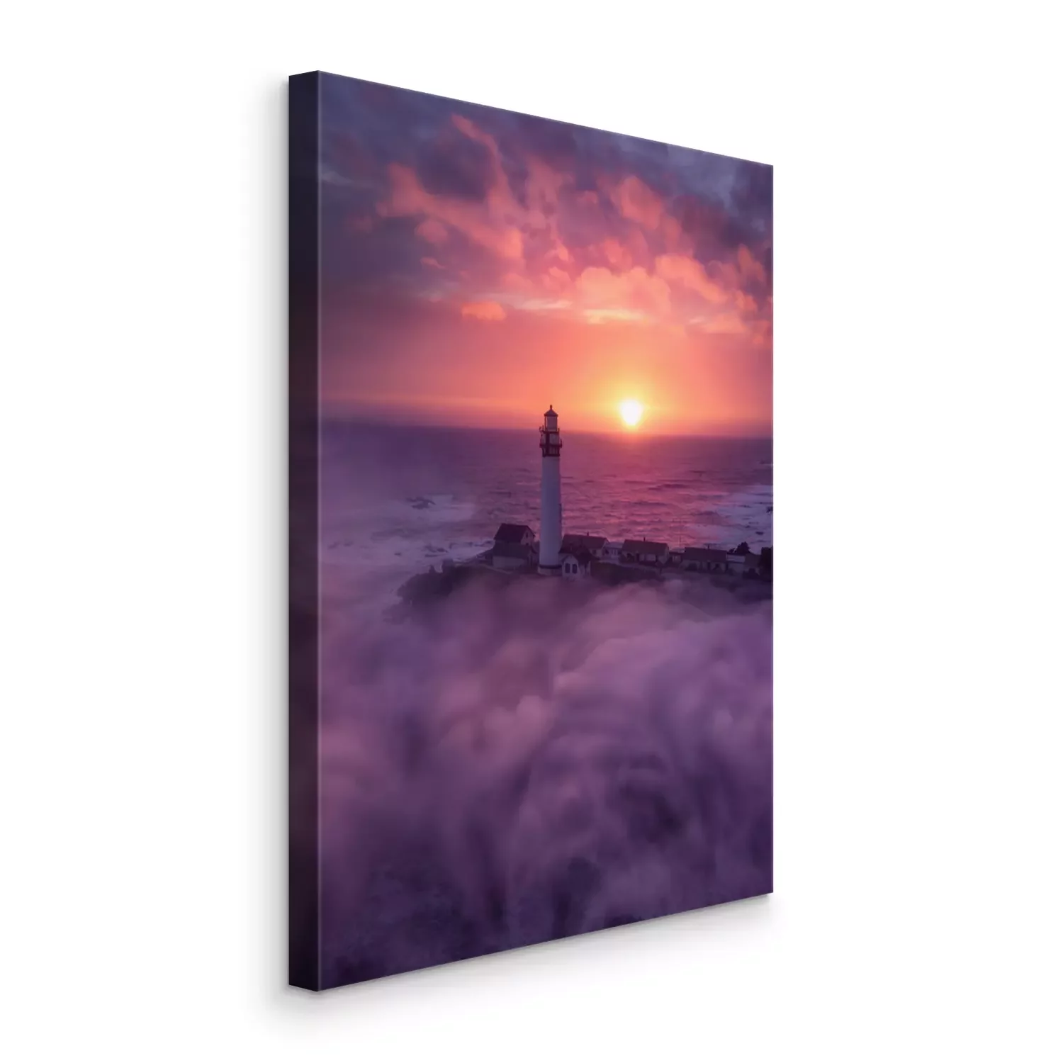 Tableau  Phare de la Californie et coucher de soleil brouillard