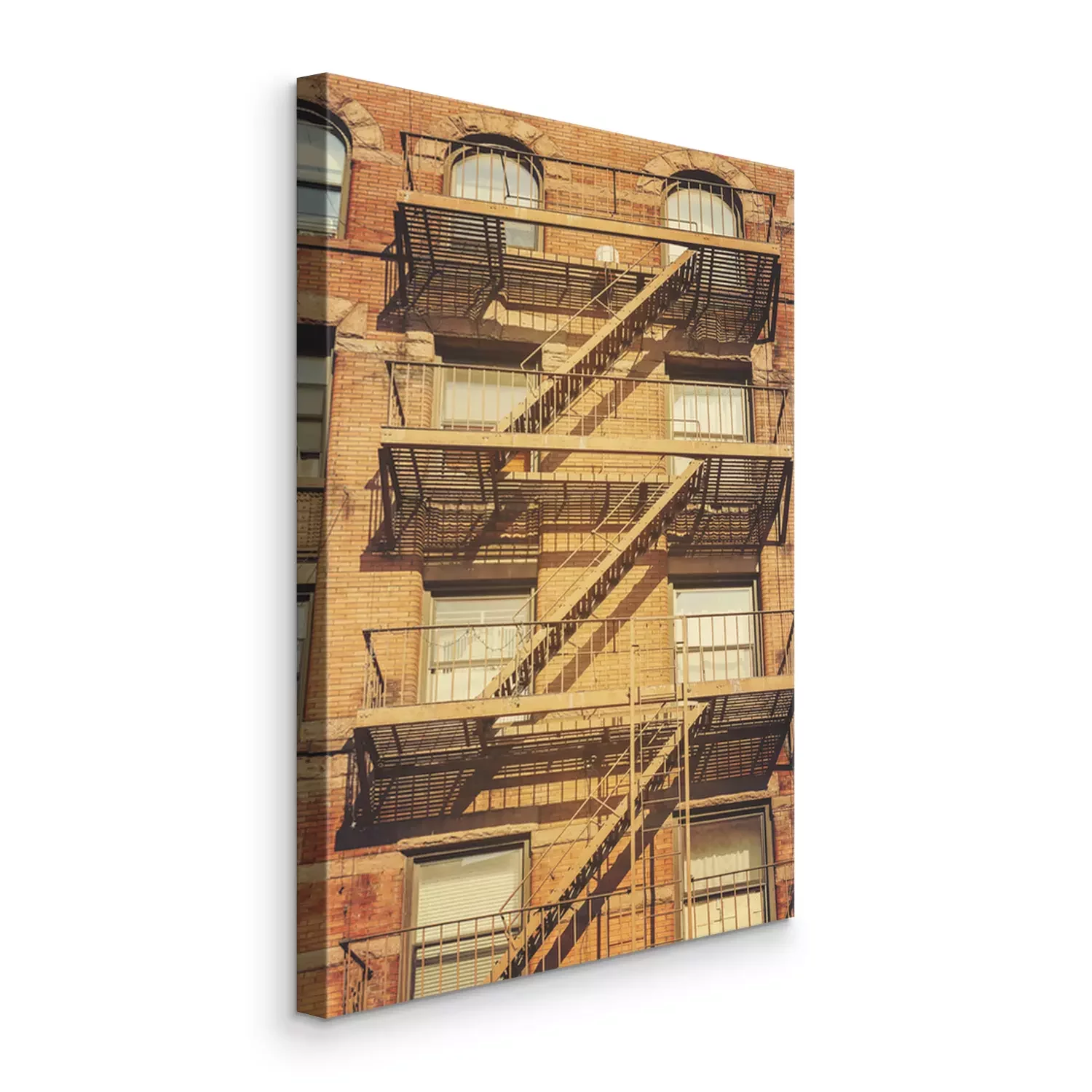 Tableau : Photo de style rétro du bâtiment avec des échelles d'évasion, NYC.