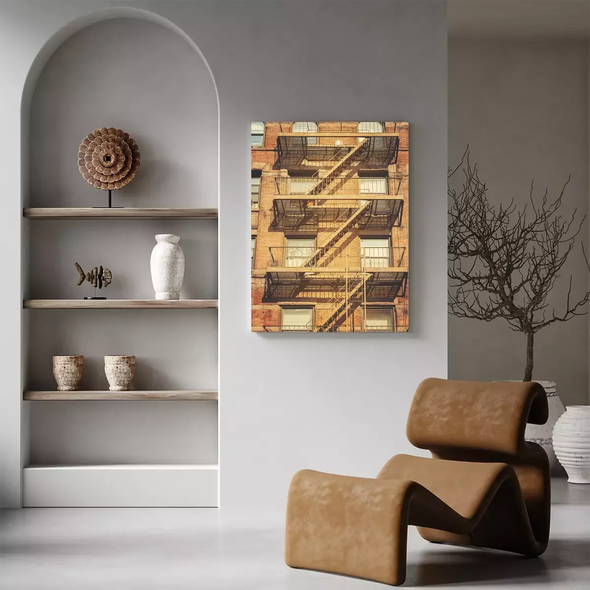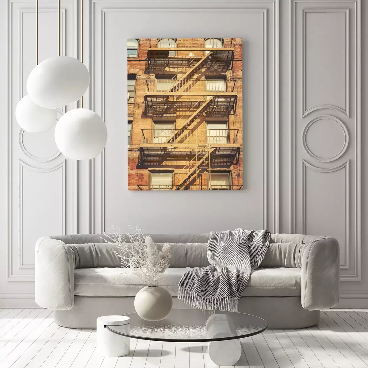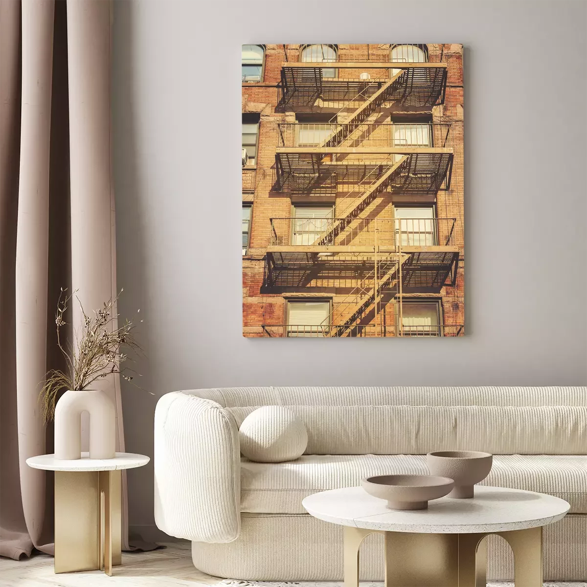 Tableau  Photo de style rétro du bâtiment avec des échelles d'évasion, NYC.