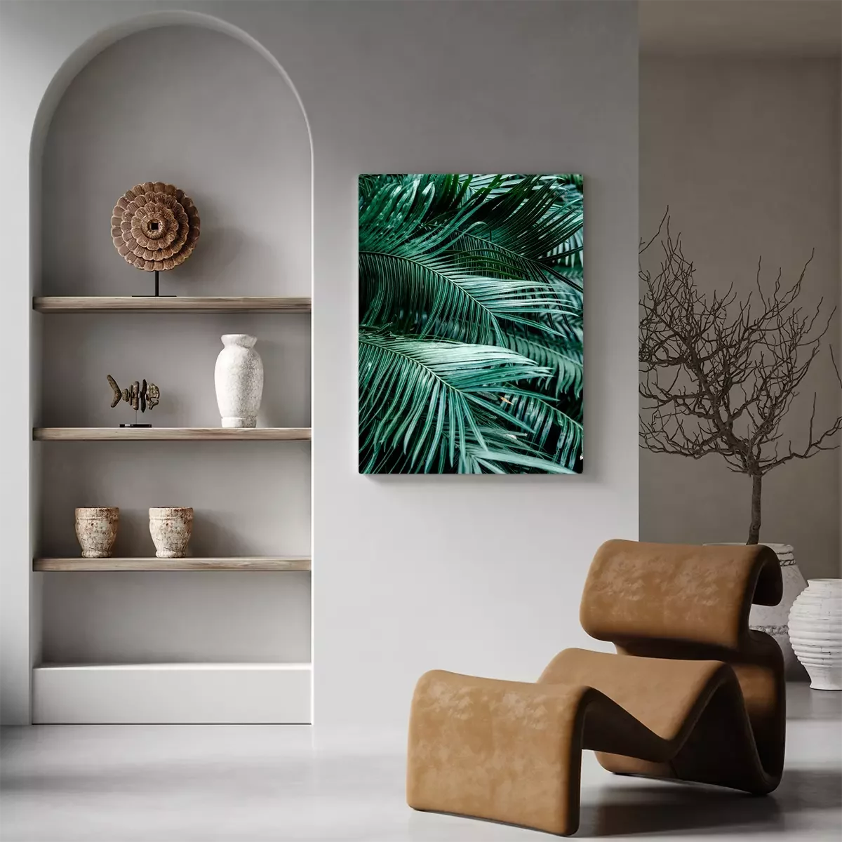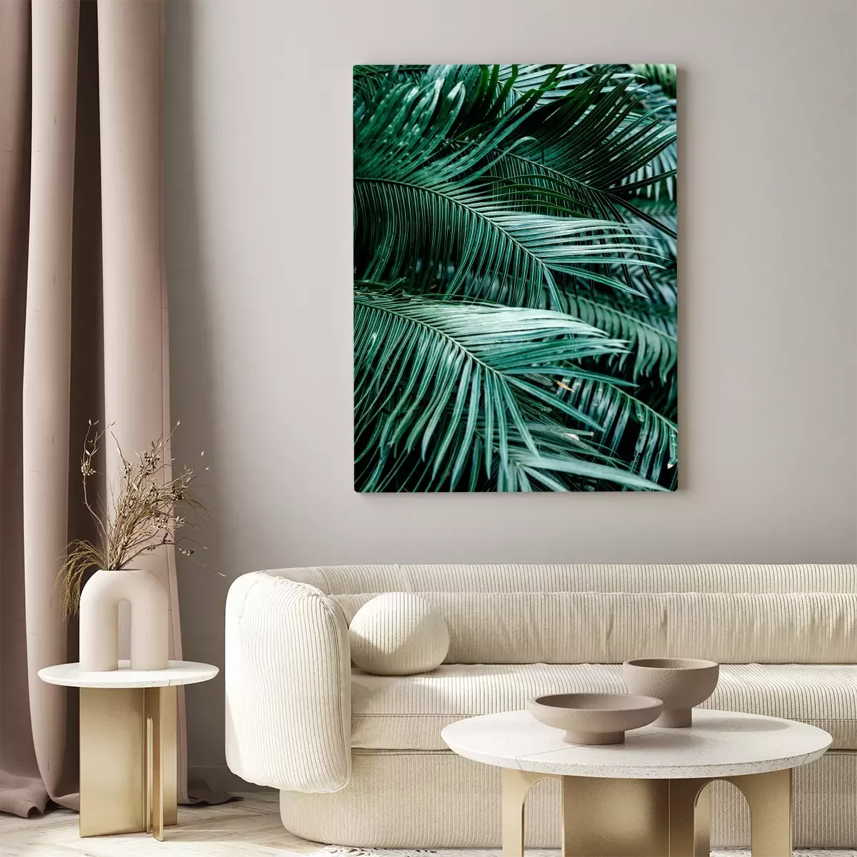 Tableau : Photo réaliste de feuilles de palmier vert foncé