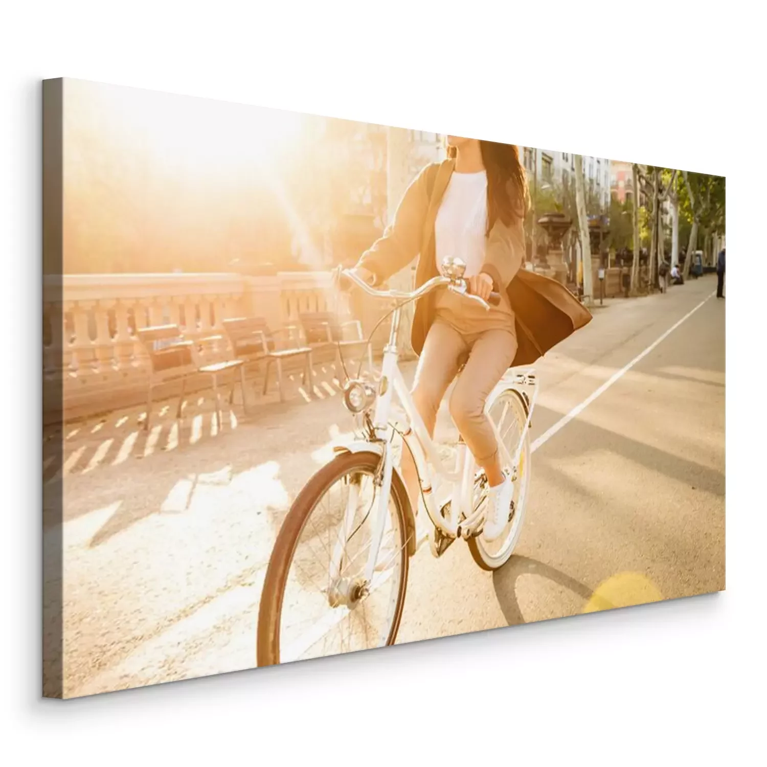 Tableau  Photo recadrée de jeune femme à vélo dans la rue.