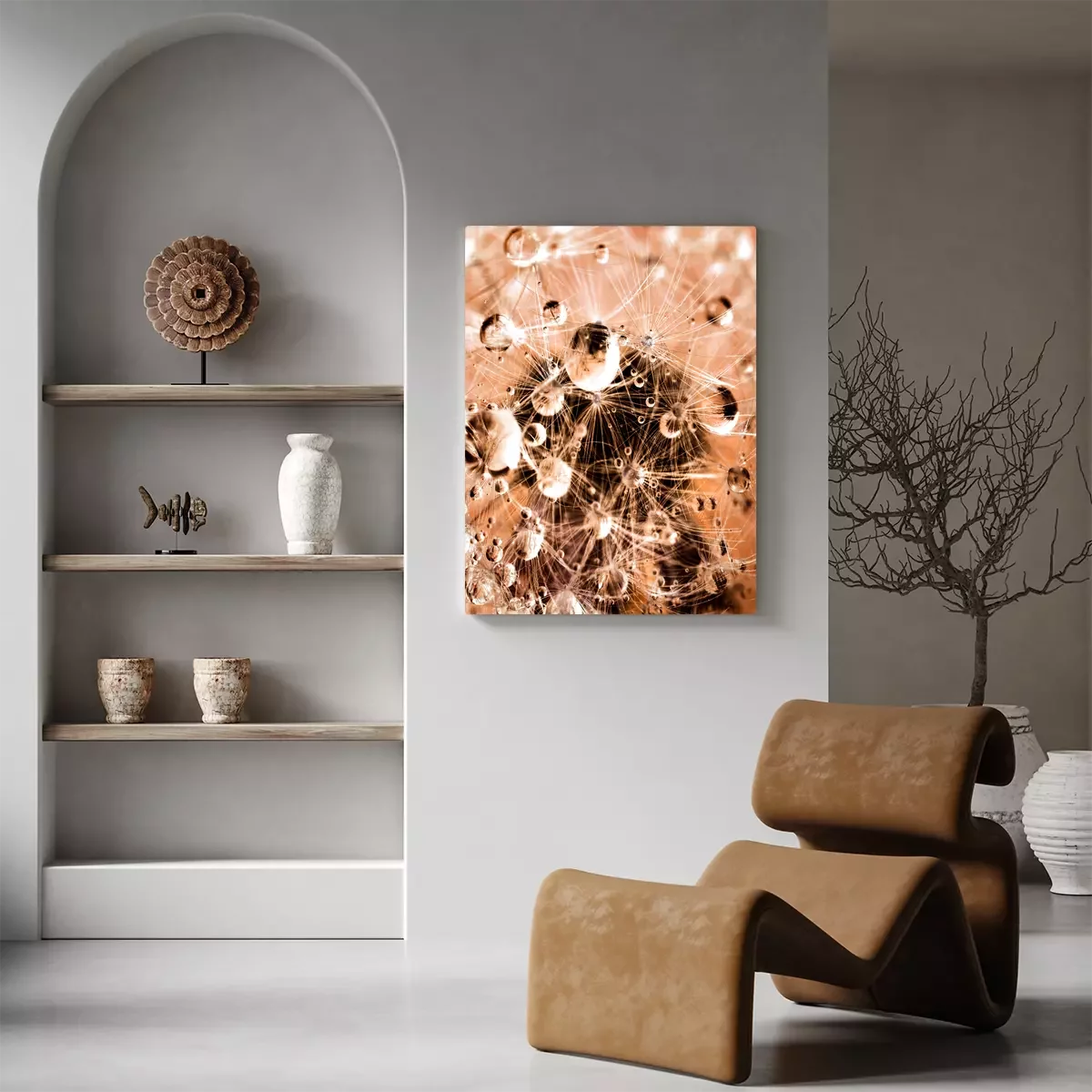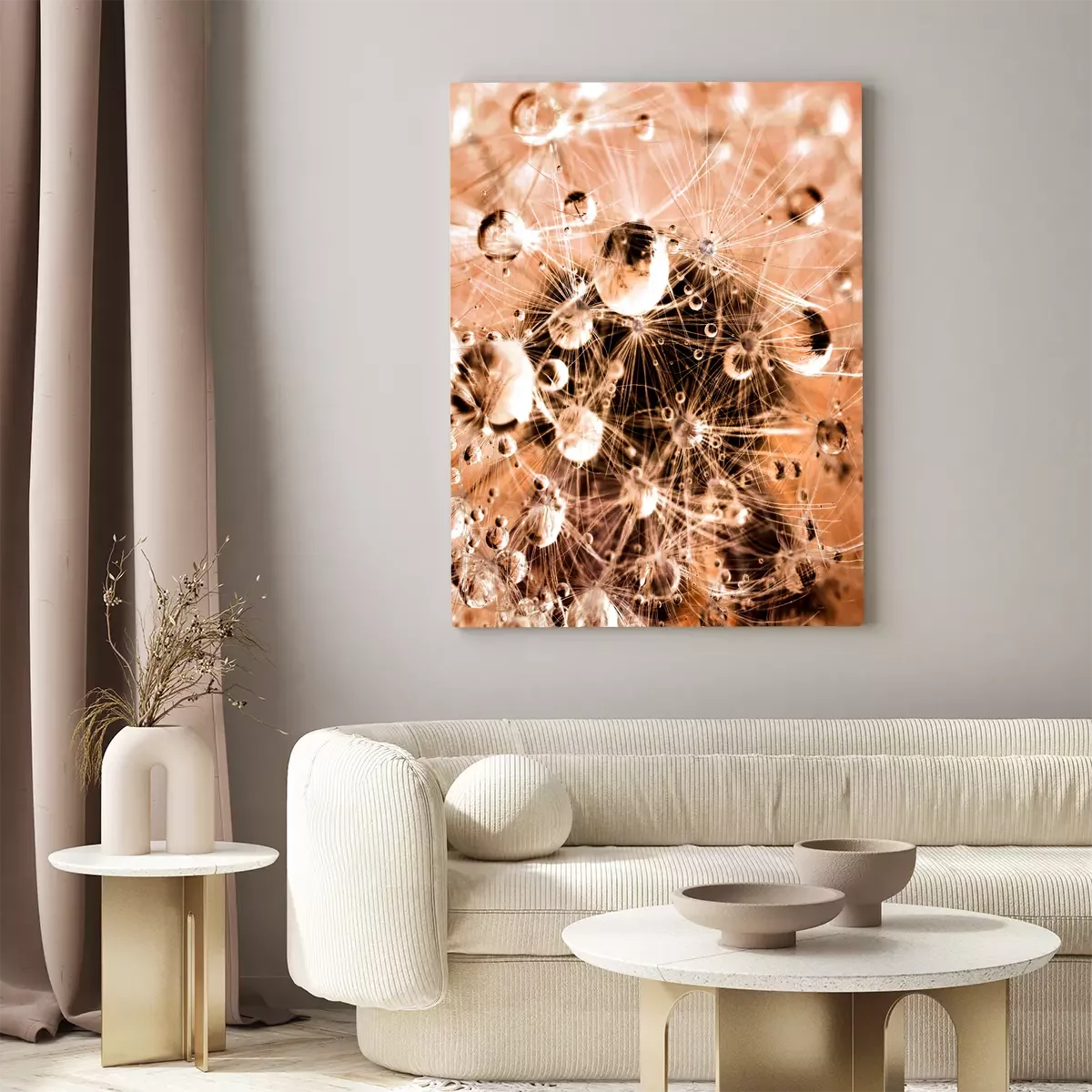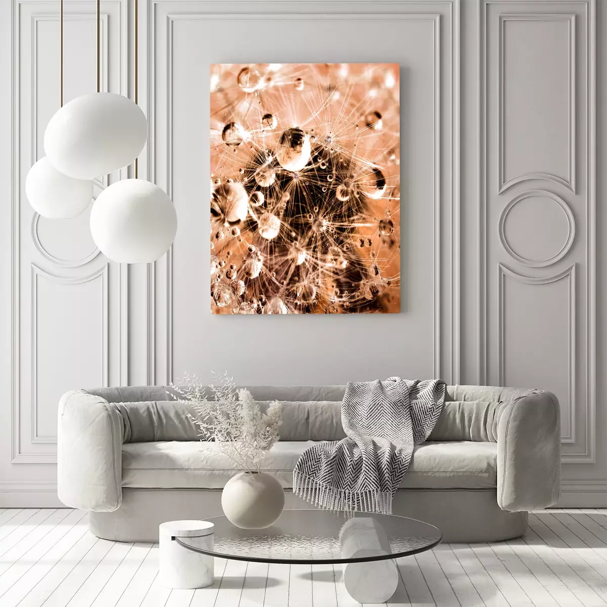 Photographie macro d'un pissenlit couvert de rosée