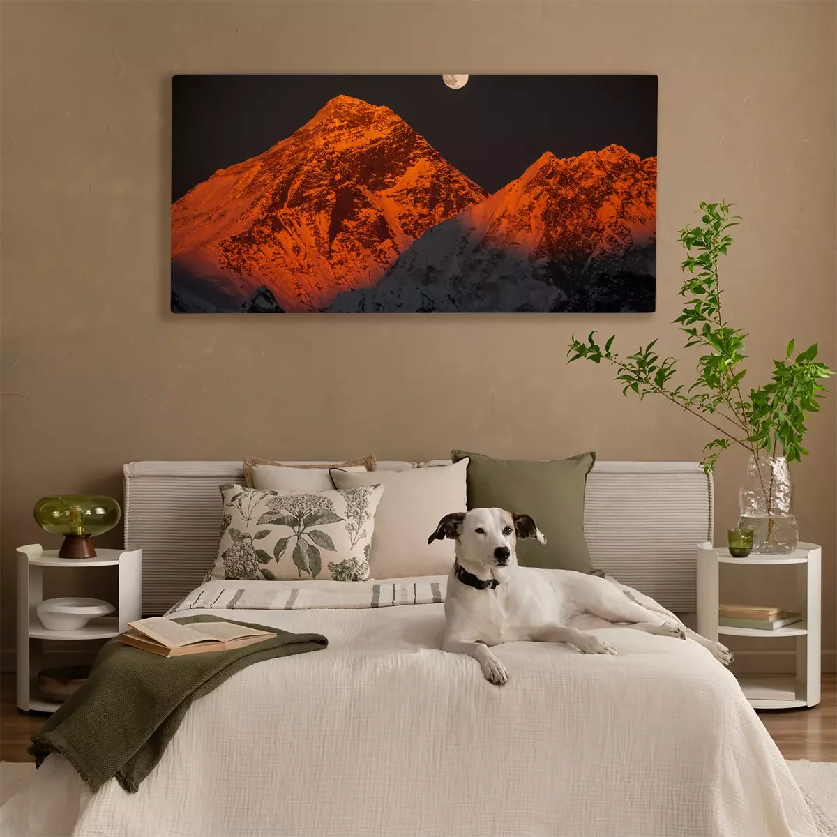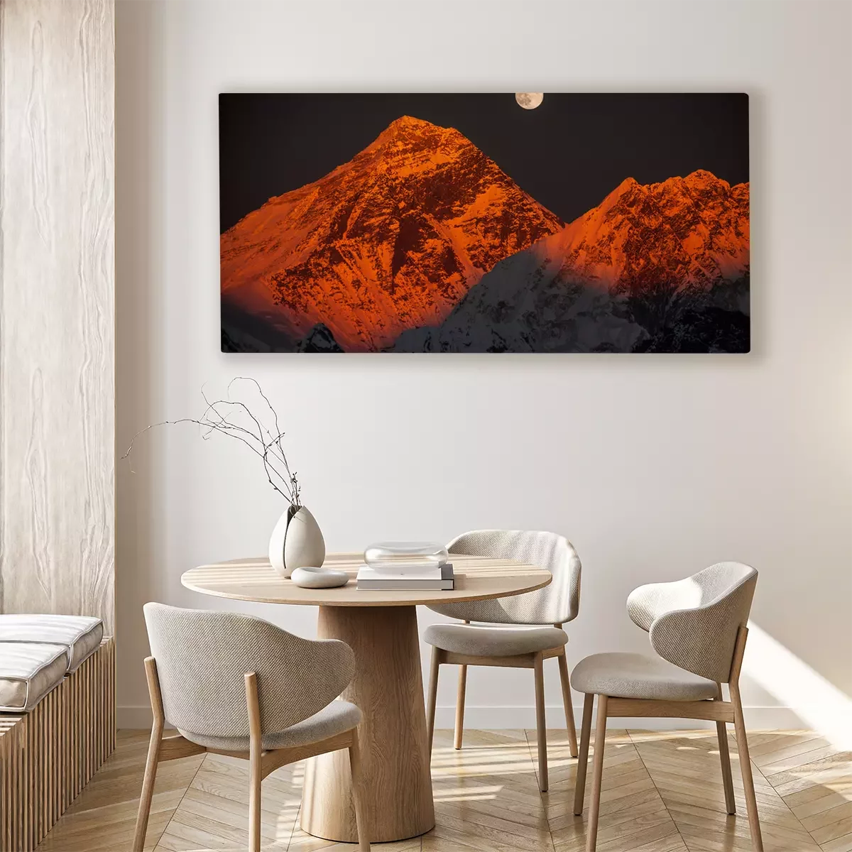 Tableau : Pic Everest au coucher du soleil en pleine lune.