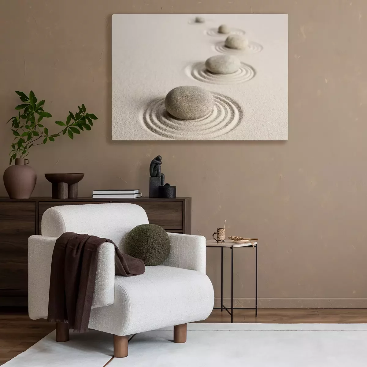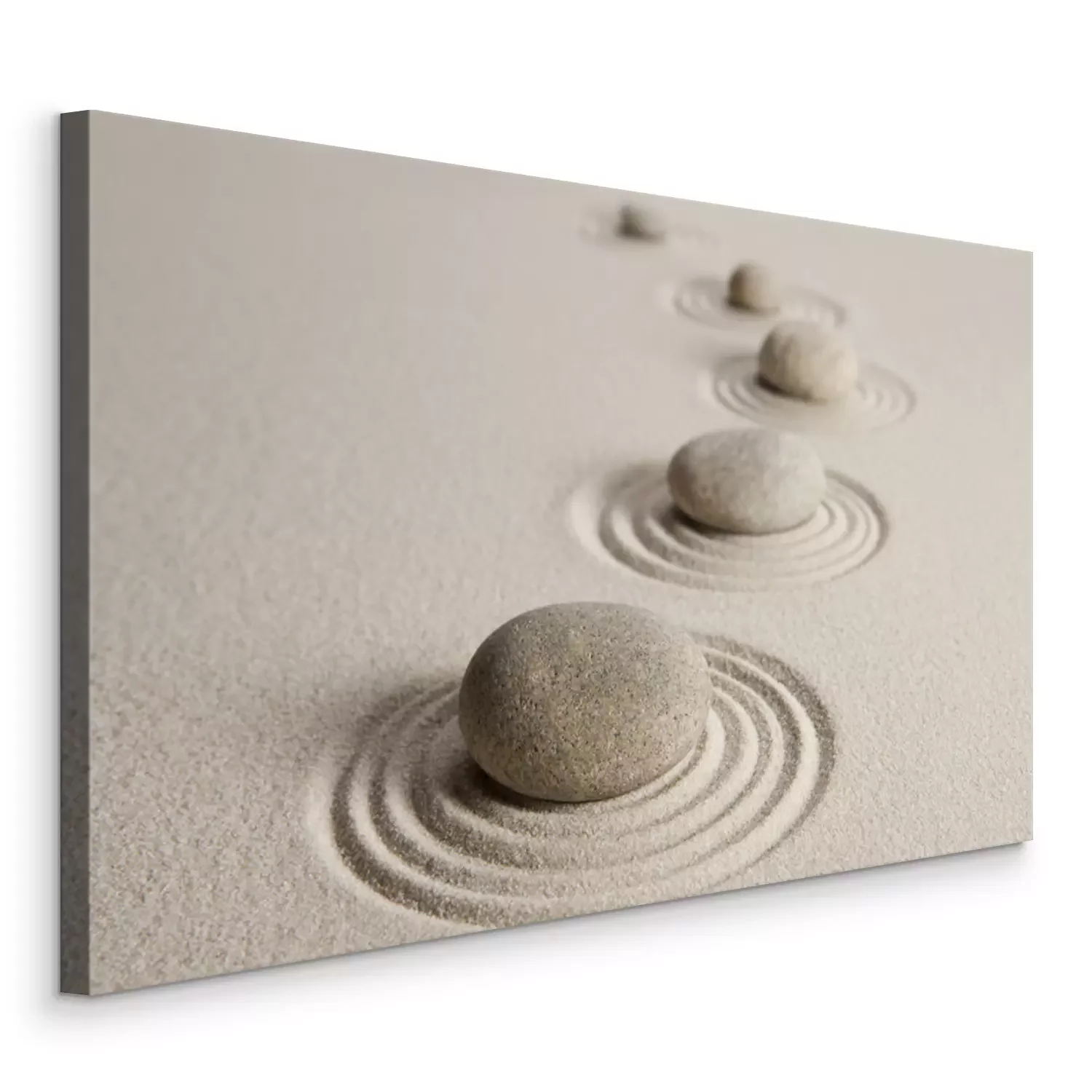 Pierres zen et lignes dans le sable