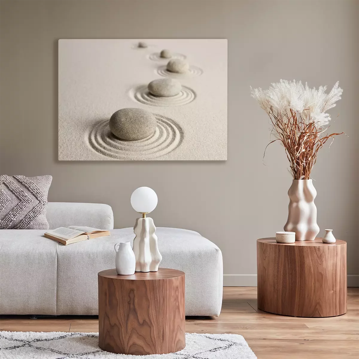 Tableau : Pierres en cercles dans le sable