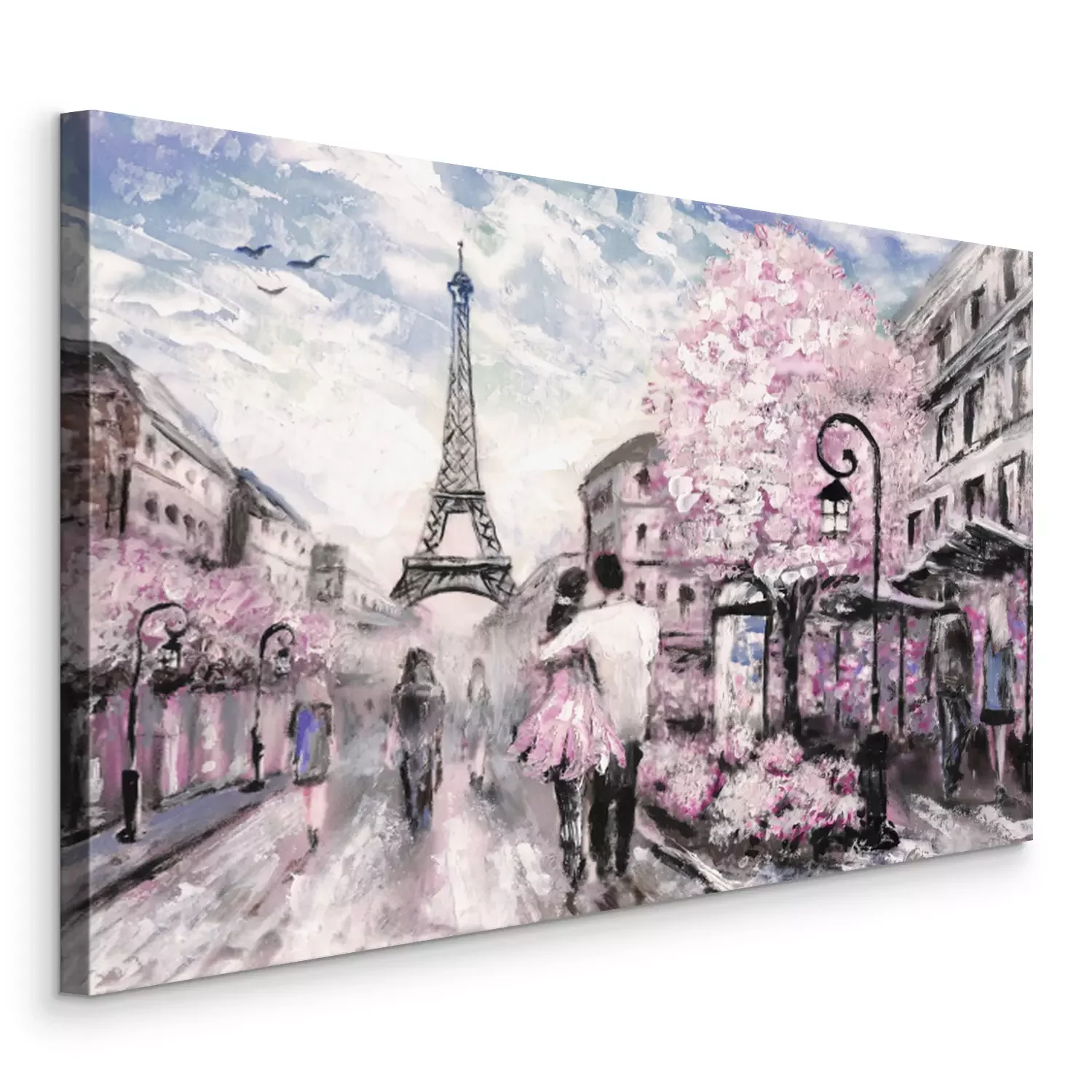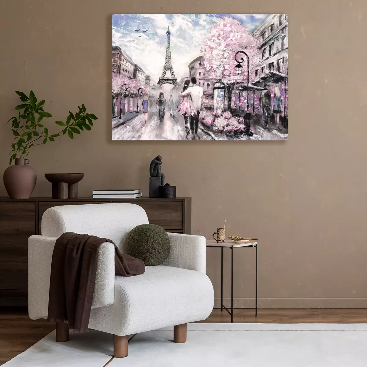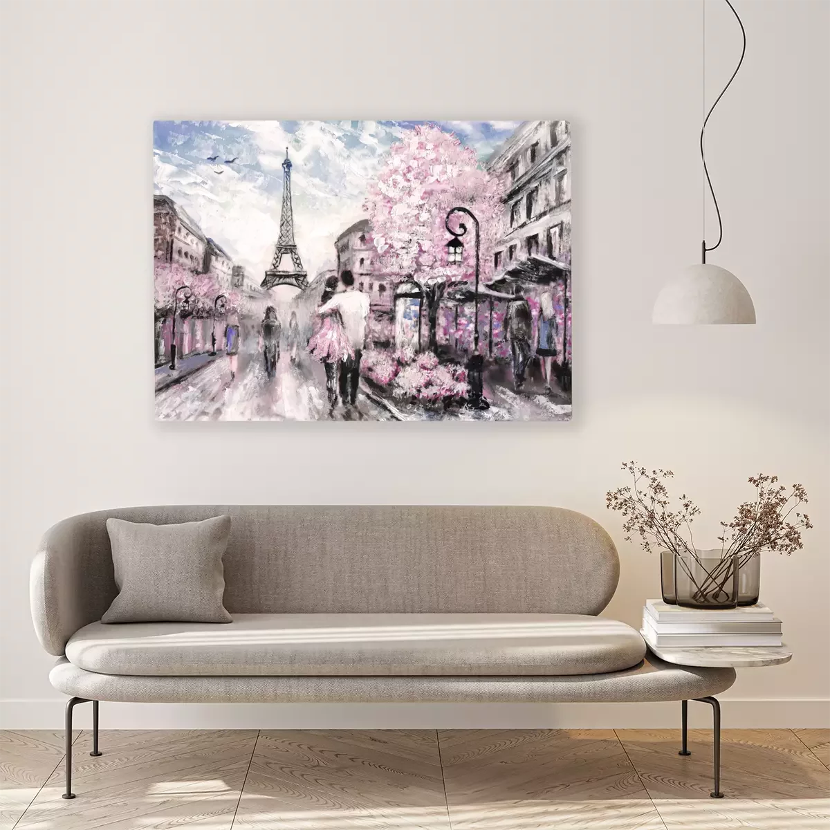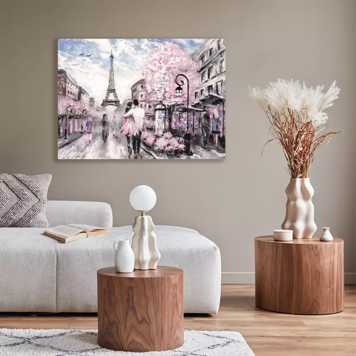 La Tour Eiffel avec des arbres roses dans un style pictural