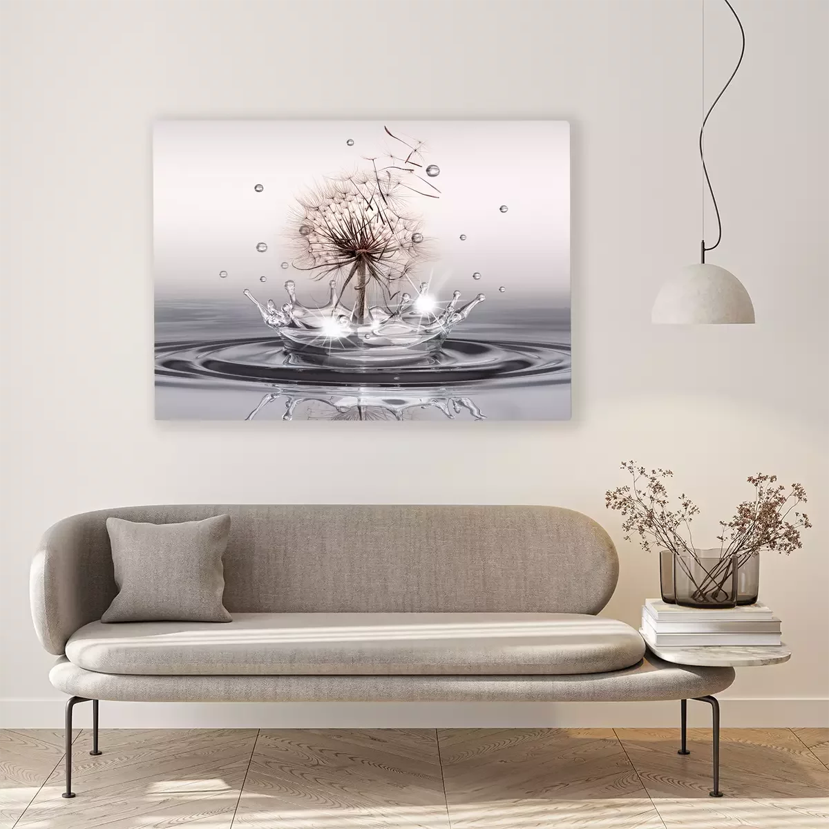 Pissenlit au-dessus d'un jet d'eau sous les lumières