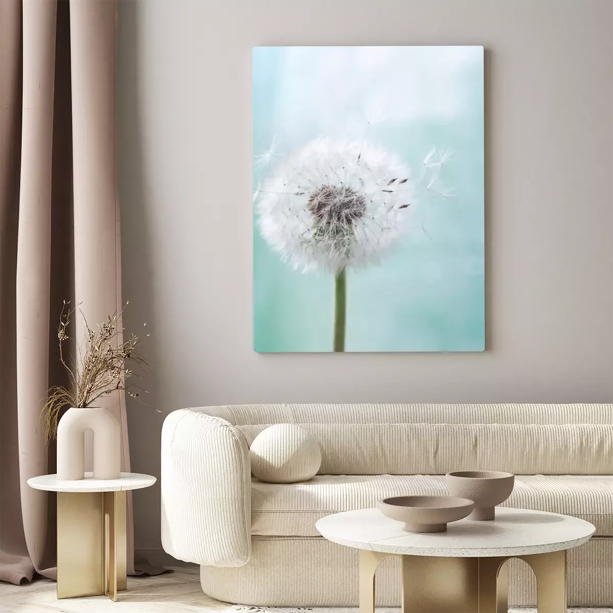 Tableau : Pissenlit blanc avec une tige verte