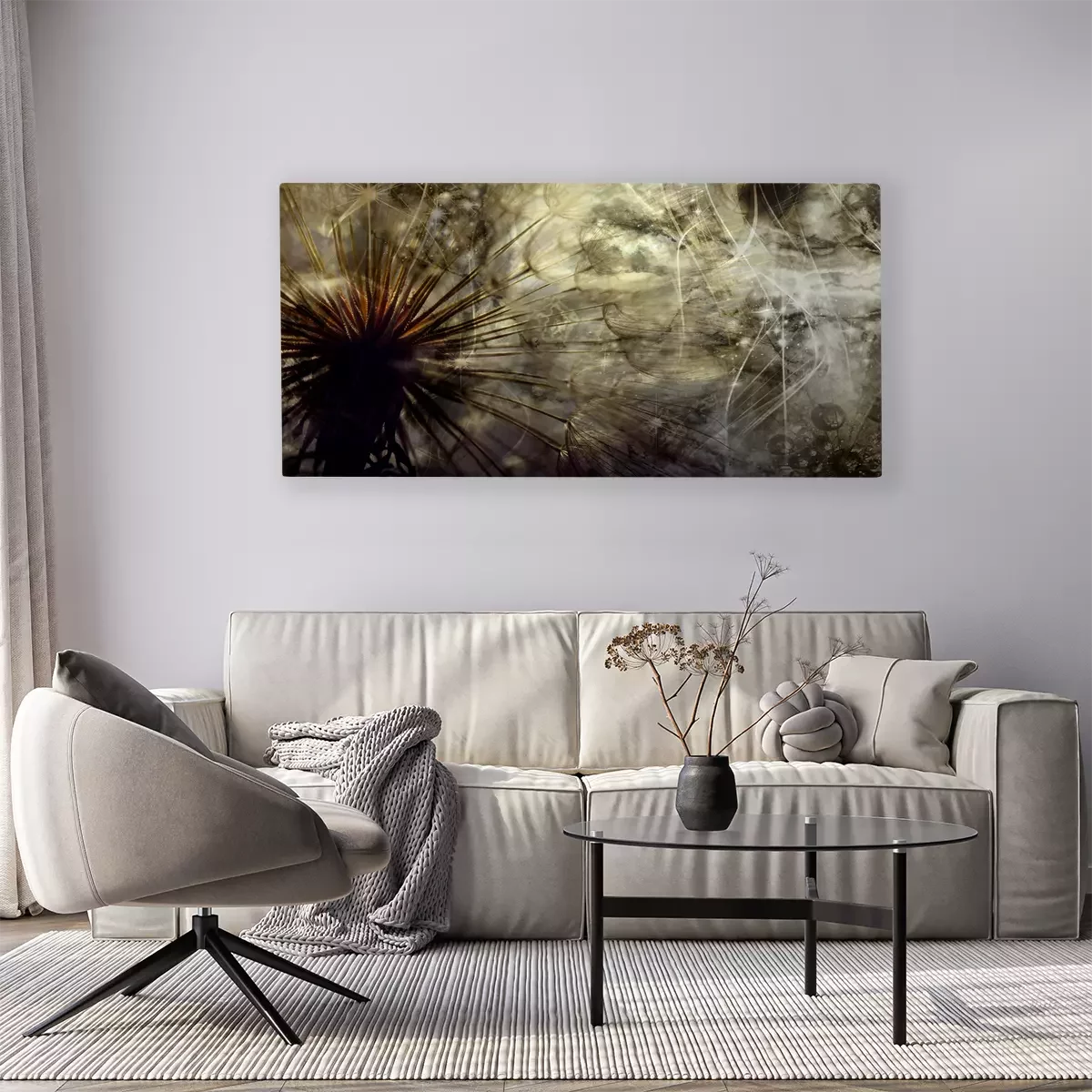 Pissenlit dans des tons foncés de brun et de gris