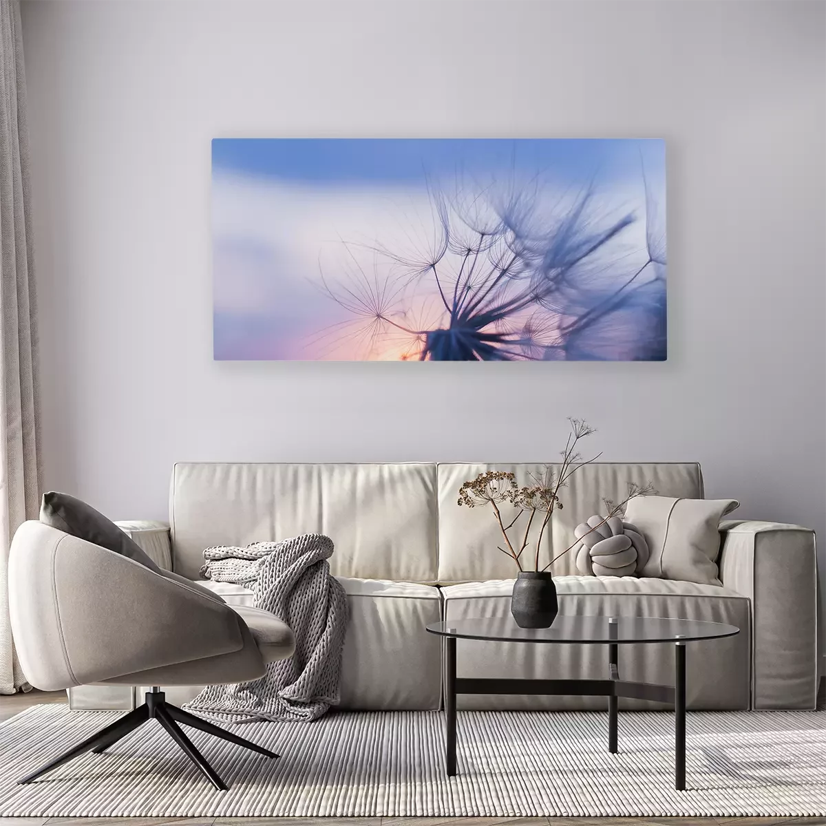 Tableau : Pissenlit dans le contexte du ciel du soir
