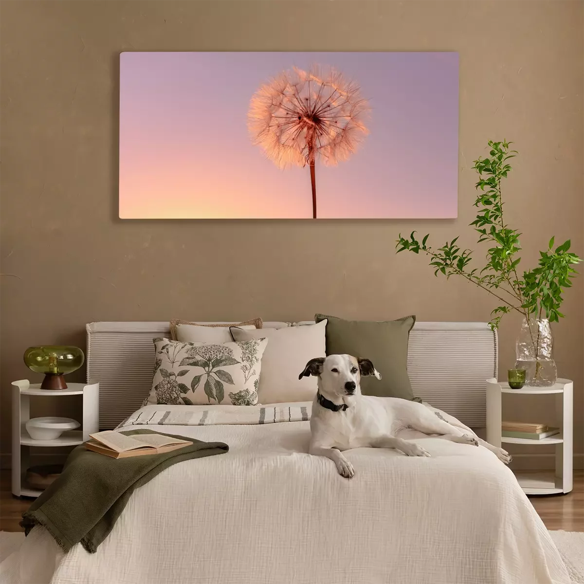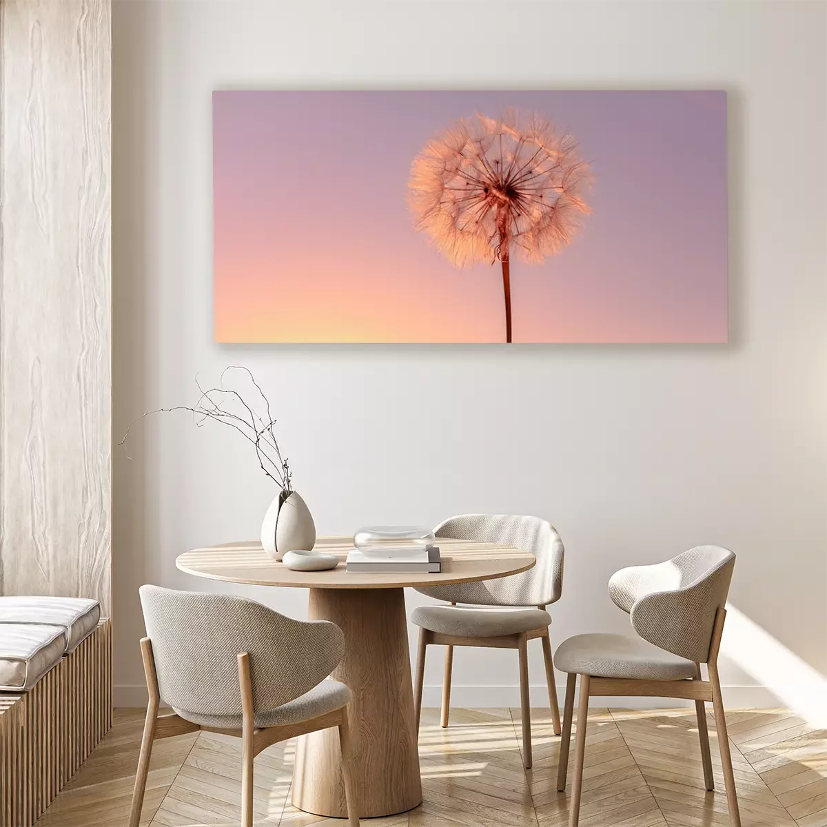 Tableau : Pissenlit sur fond de ciel pastel