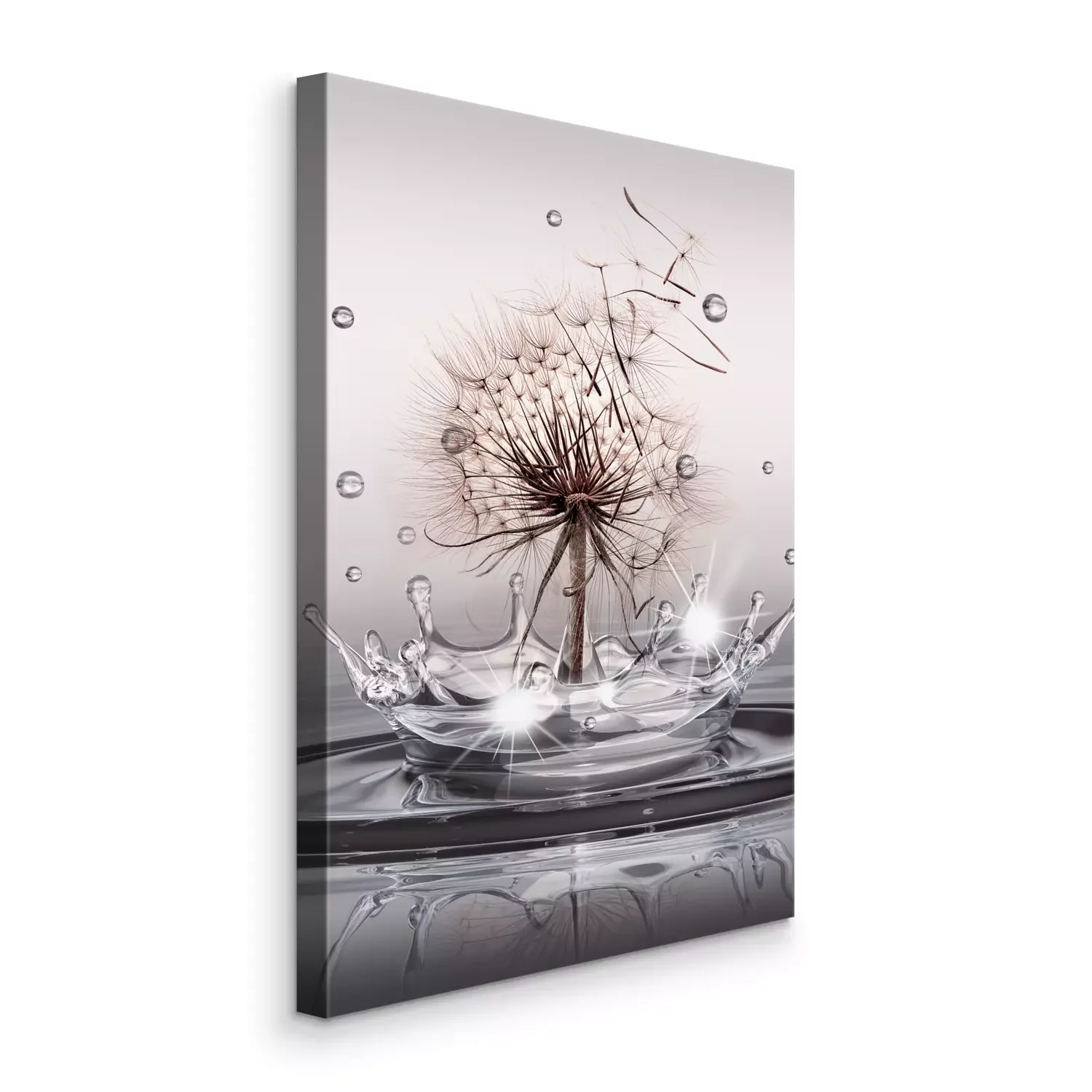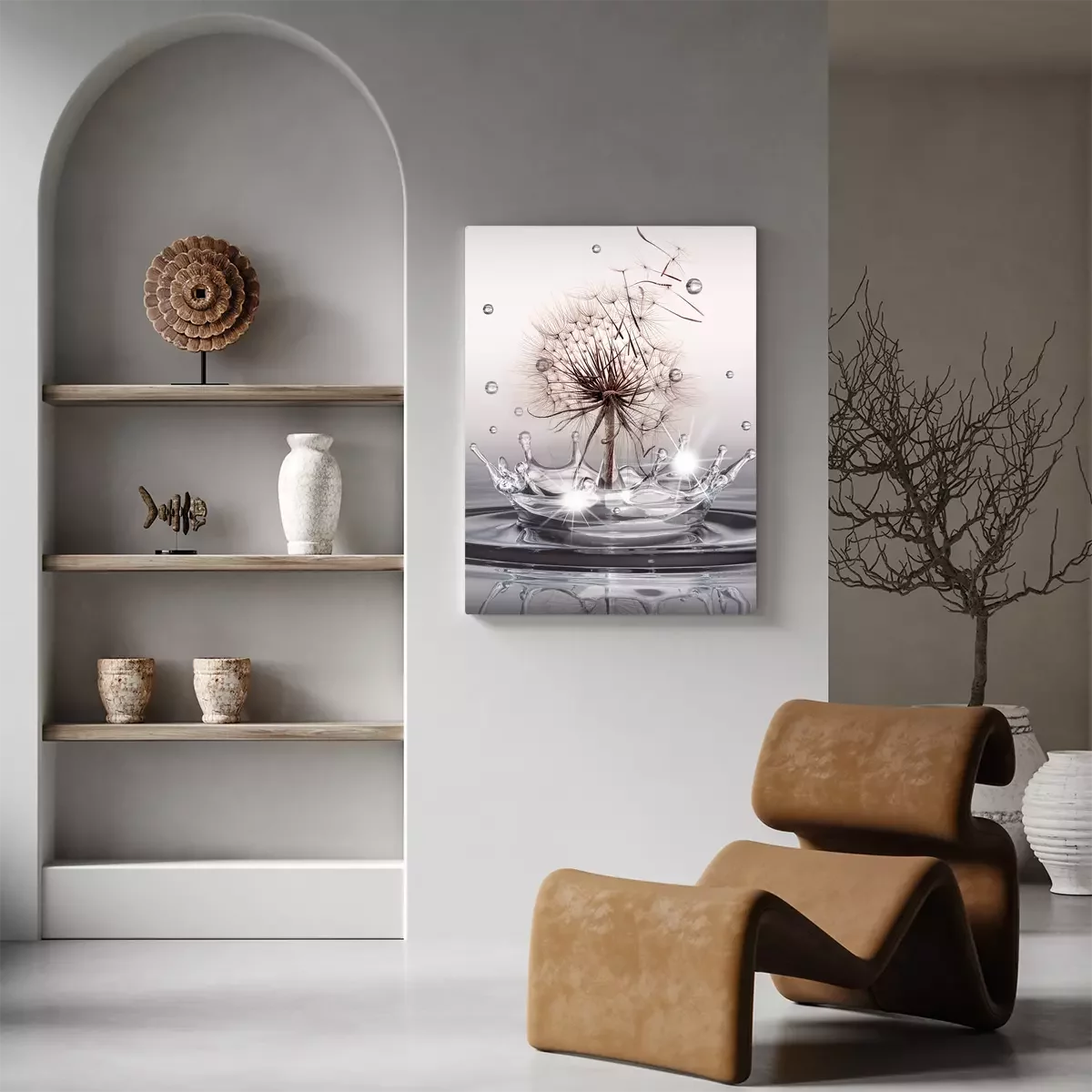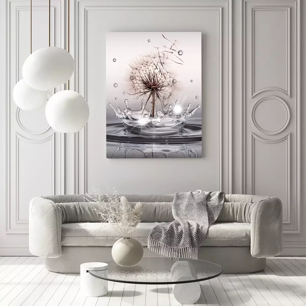 Pissenlit sur l'eau avec des éclaboussures et des reflets