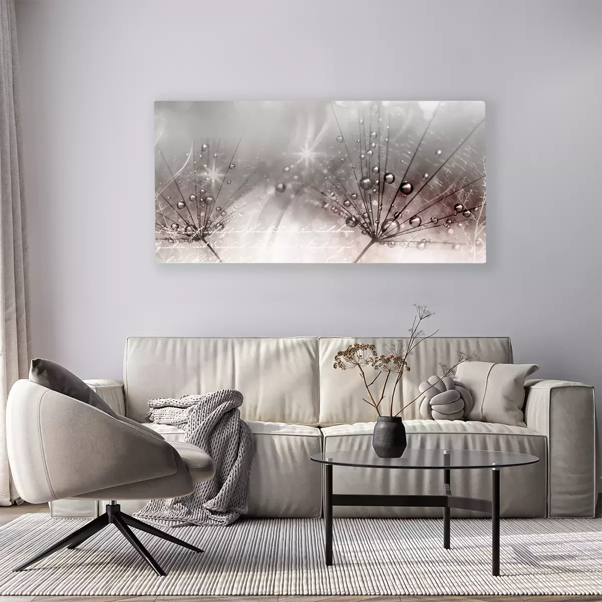Pissenlits avec des gouttes de rosée dans des tons bruns et gris