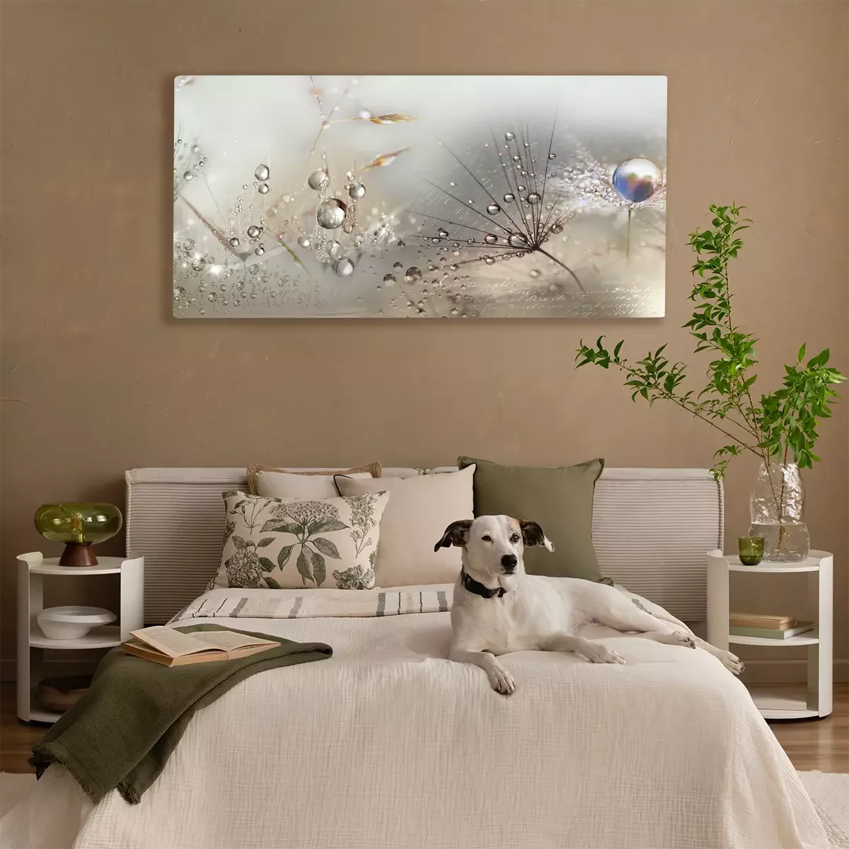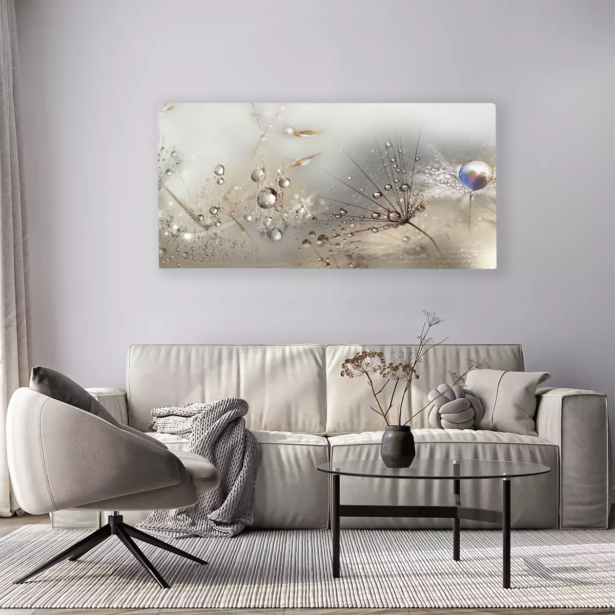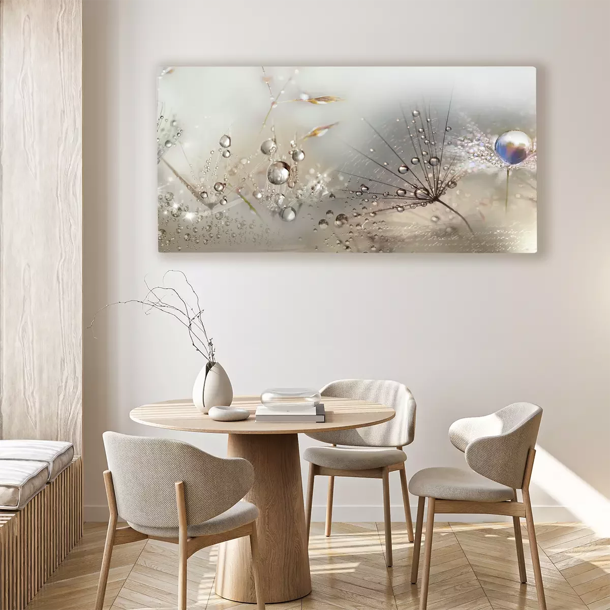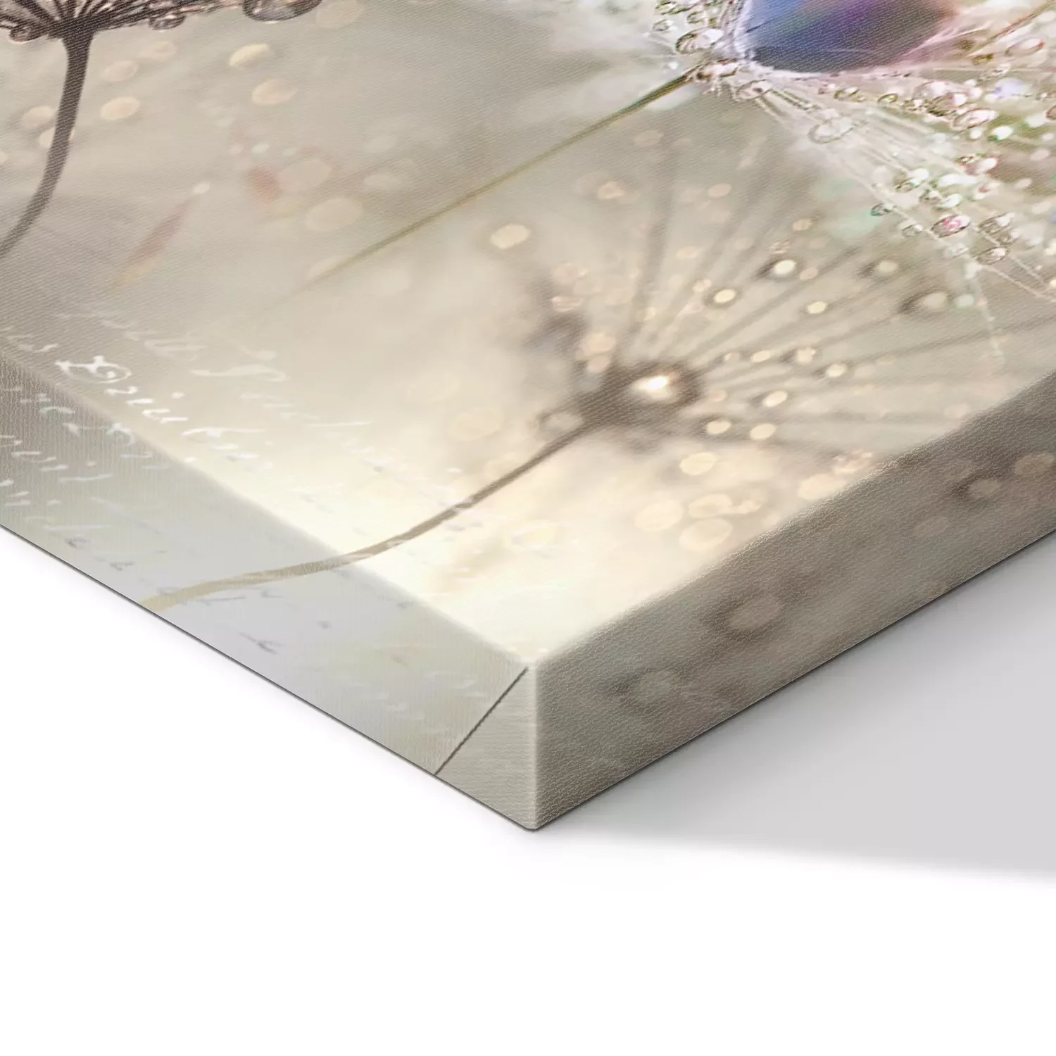 Pissenlits dans une composition lumineuse avec des gouttelettes
