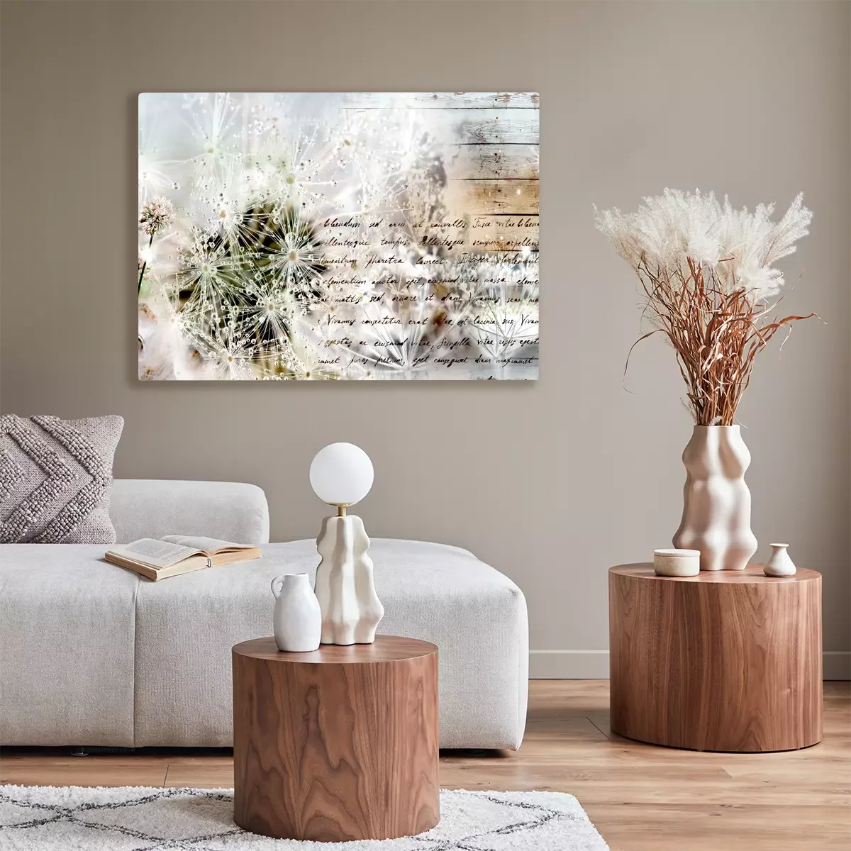Pissenlits éclatants couverts de rosée et texte sur fond de bois