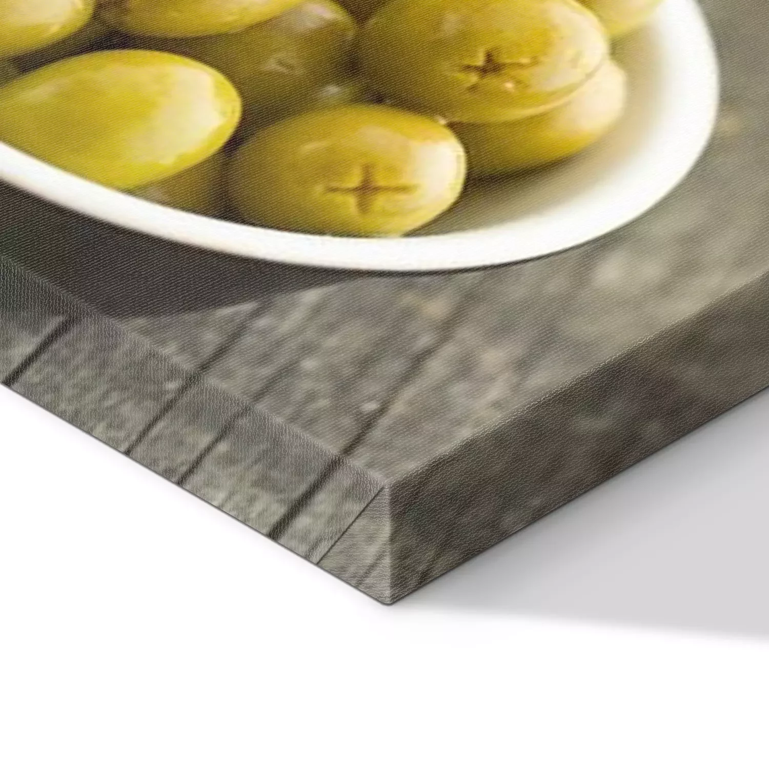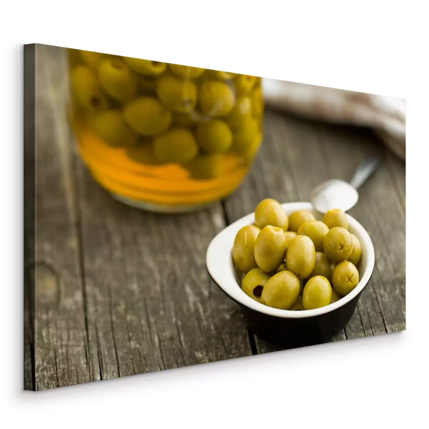Tableau : Pitted, vert, olives, bol