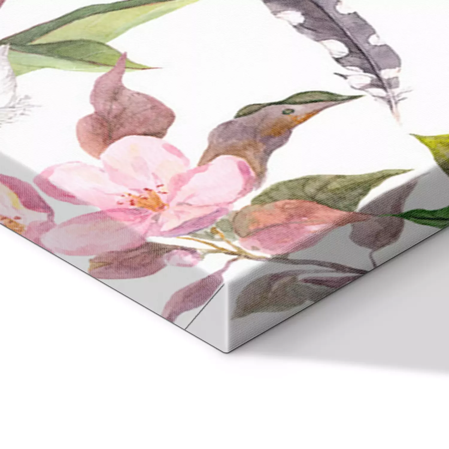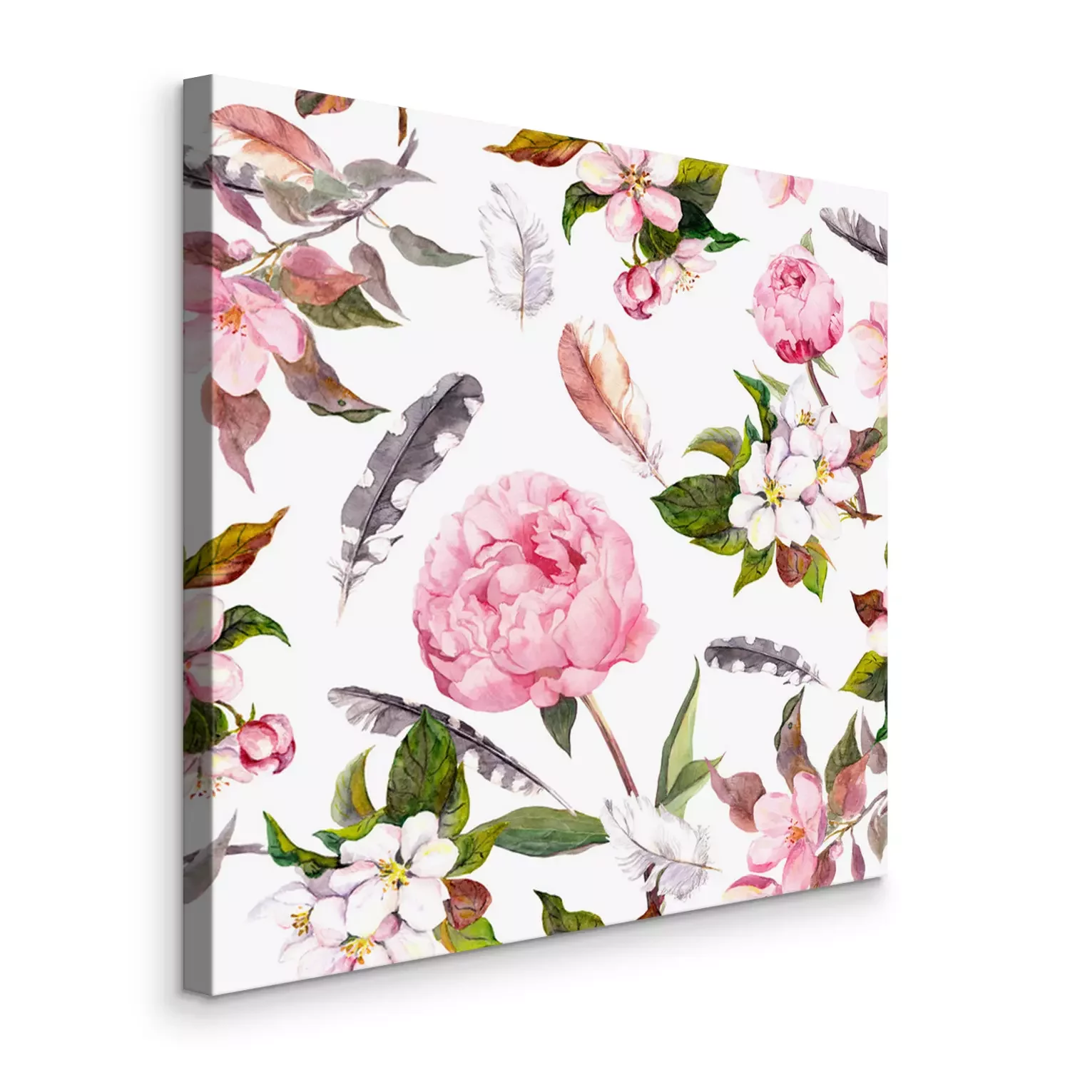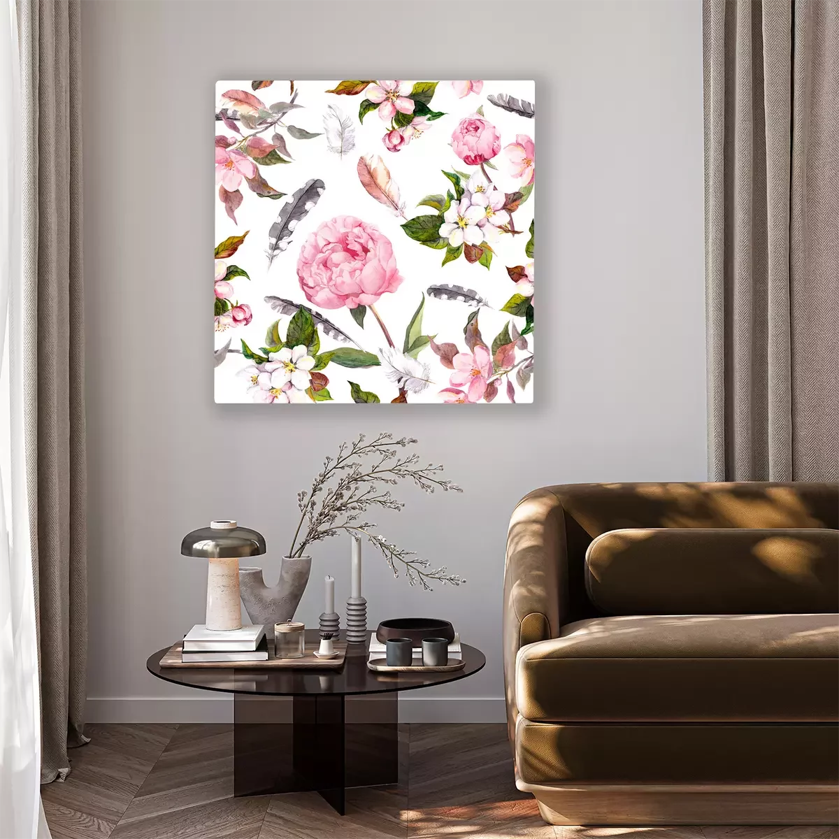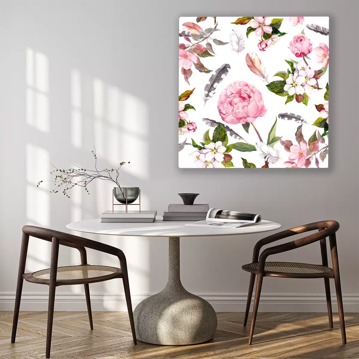 Tableau  Pivoines graphiques vintage et plumes d'oiseaux