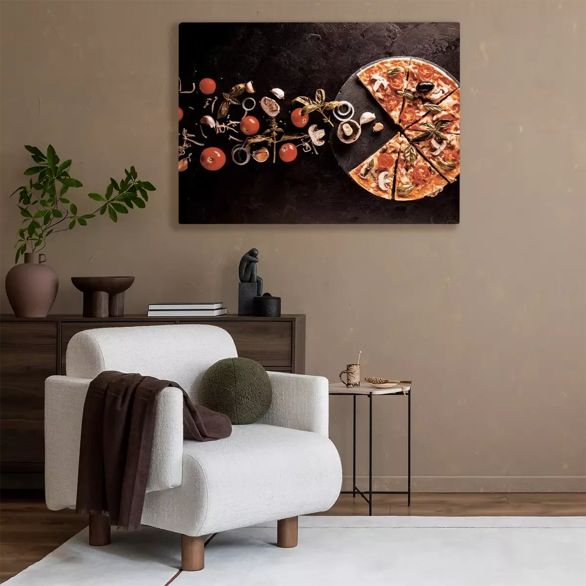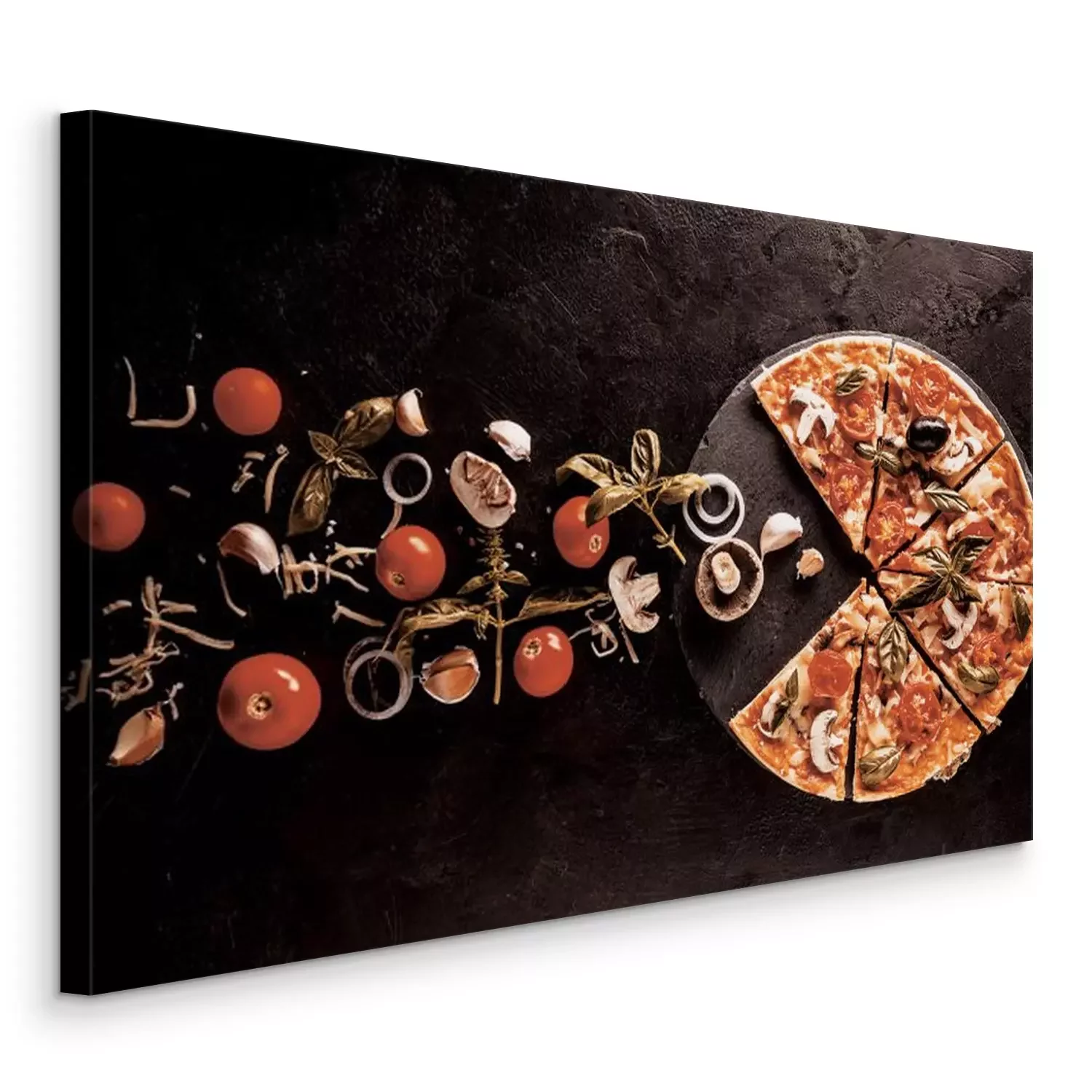 Pizza aux légumes et feuilles de basilic