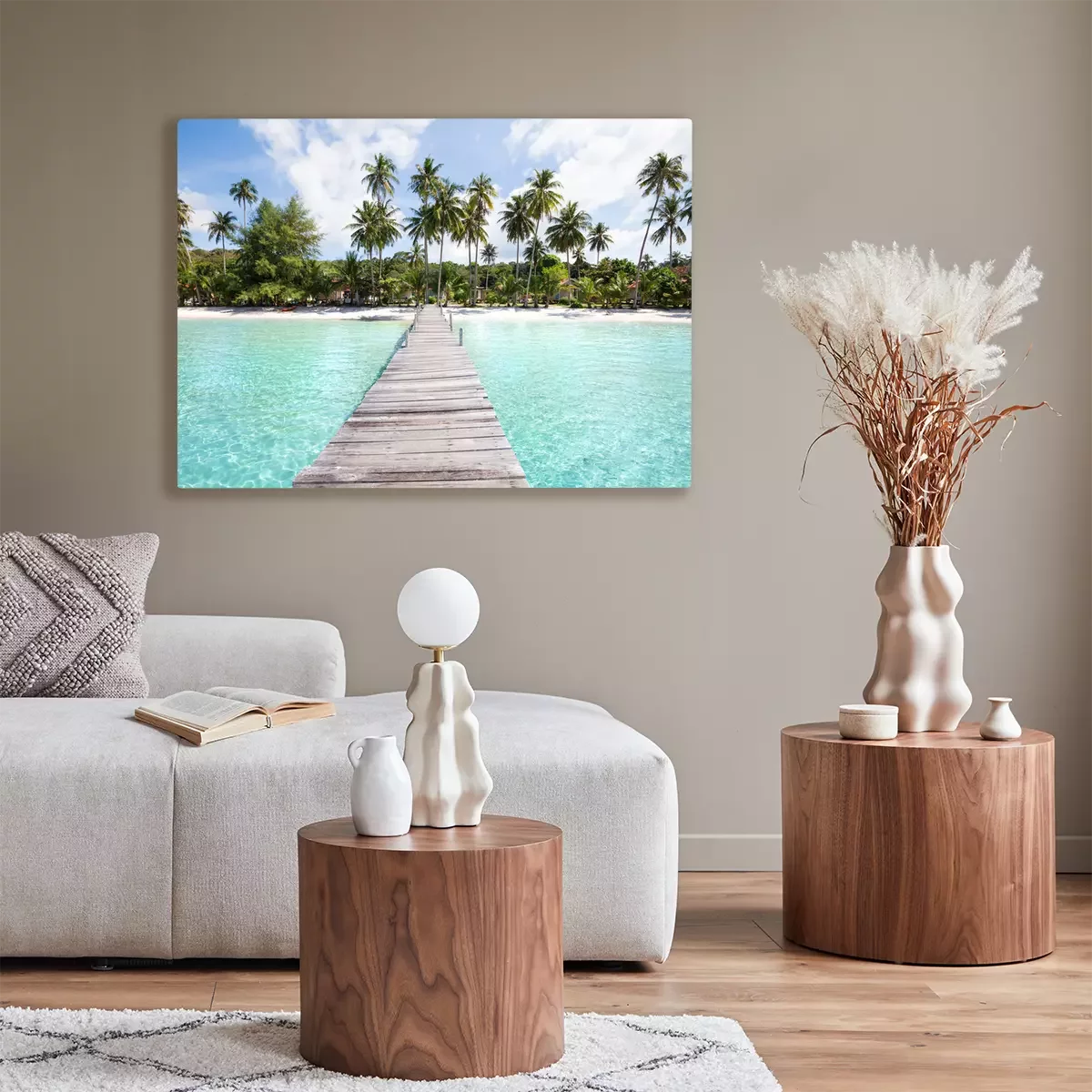 Tableau : Plage paradisiaque et jetée
