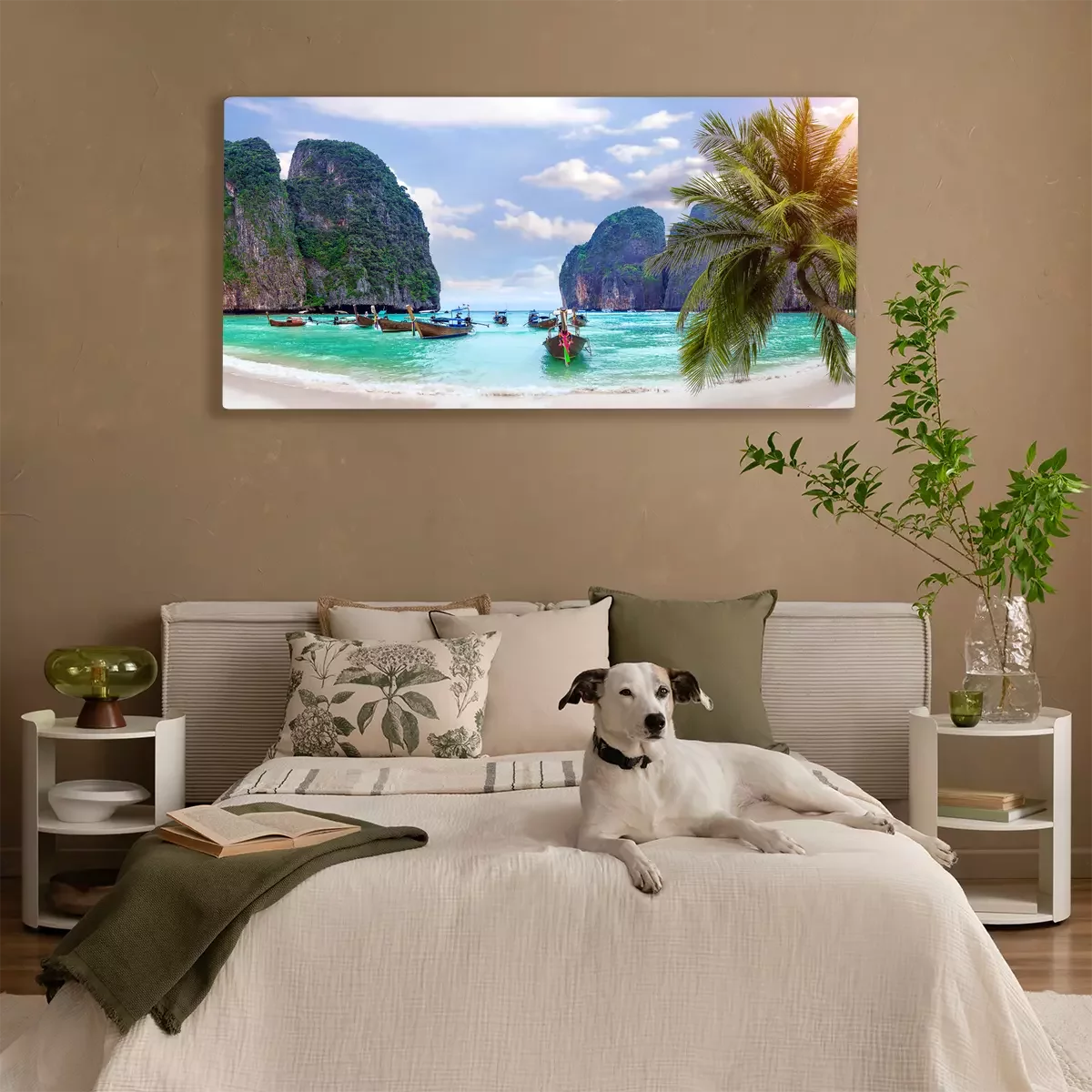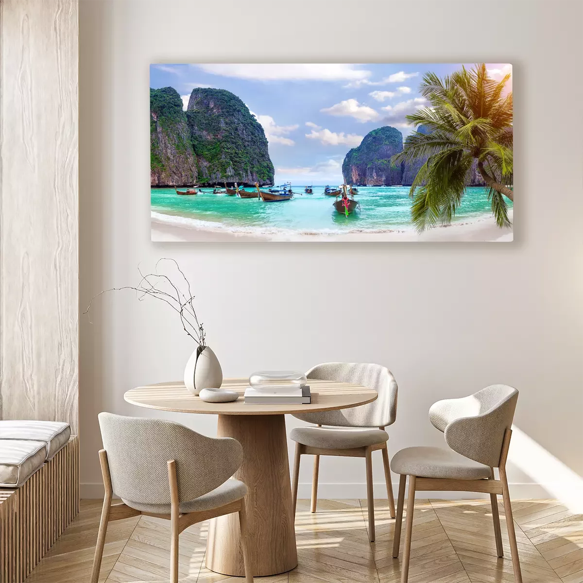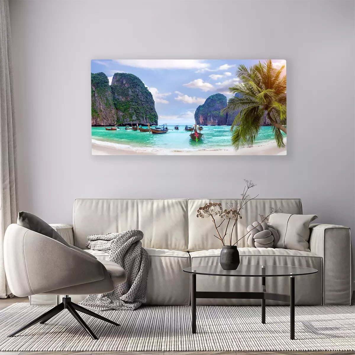 Plage tropicale et bateaux entourés de falaises