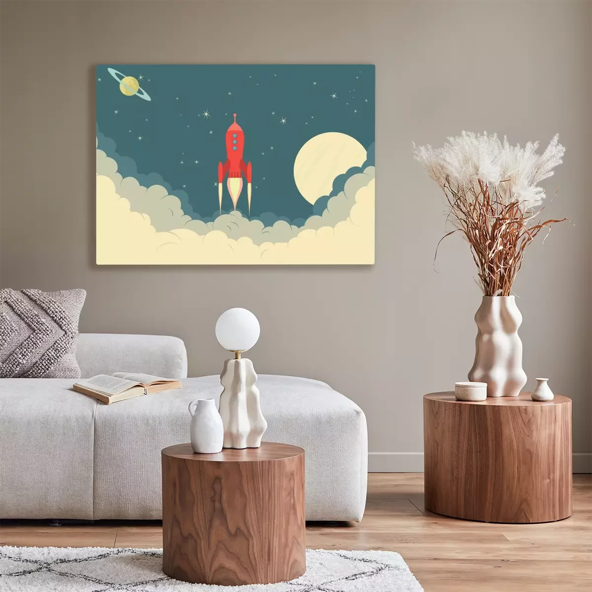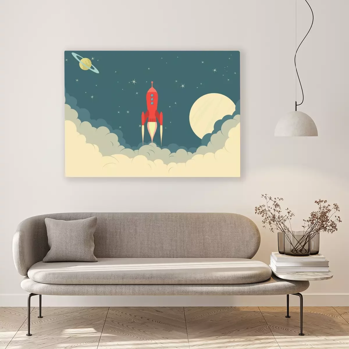 Tableau : Planètes et fusée spatiale