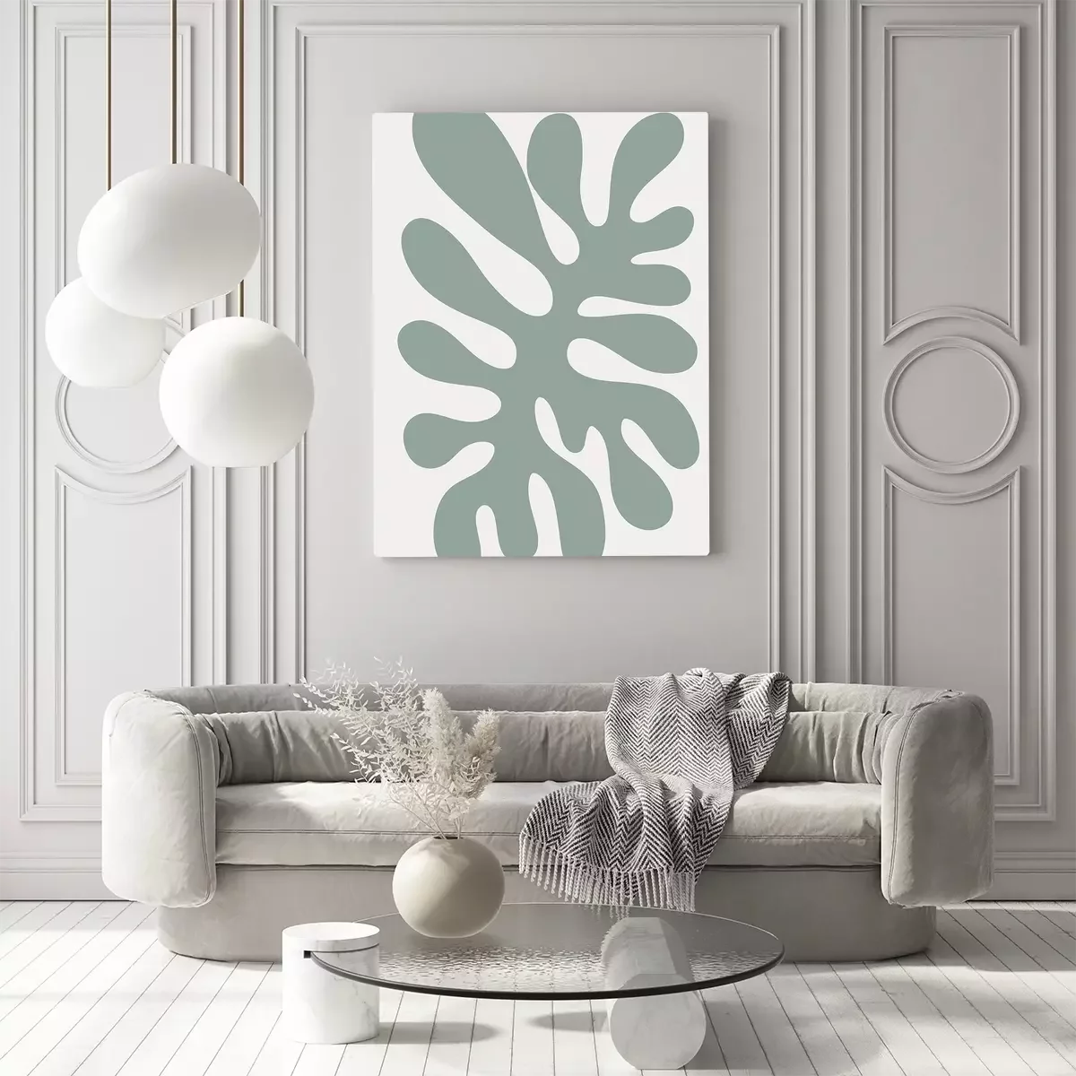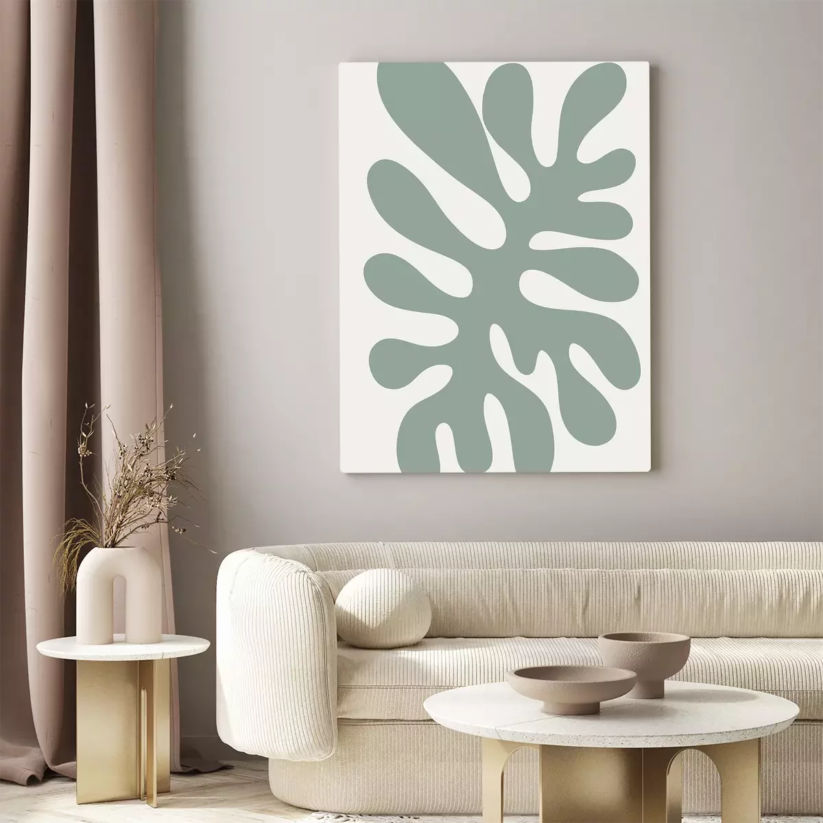 Tableau : Plante abstraite en vert sauge