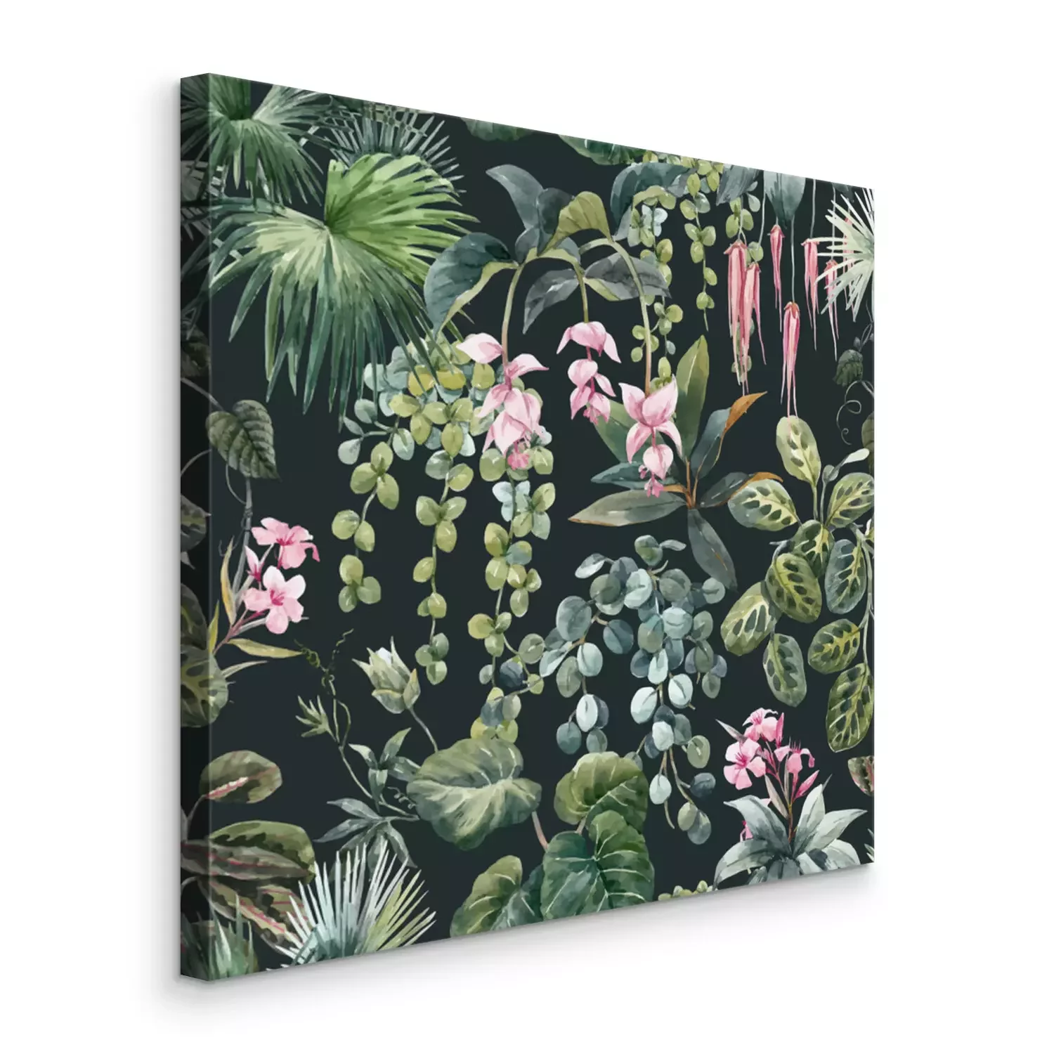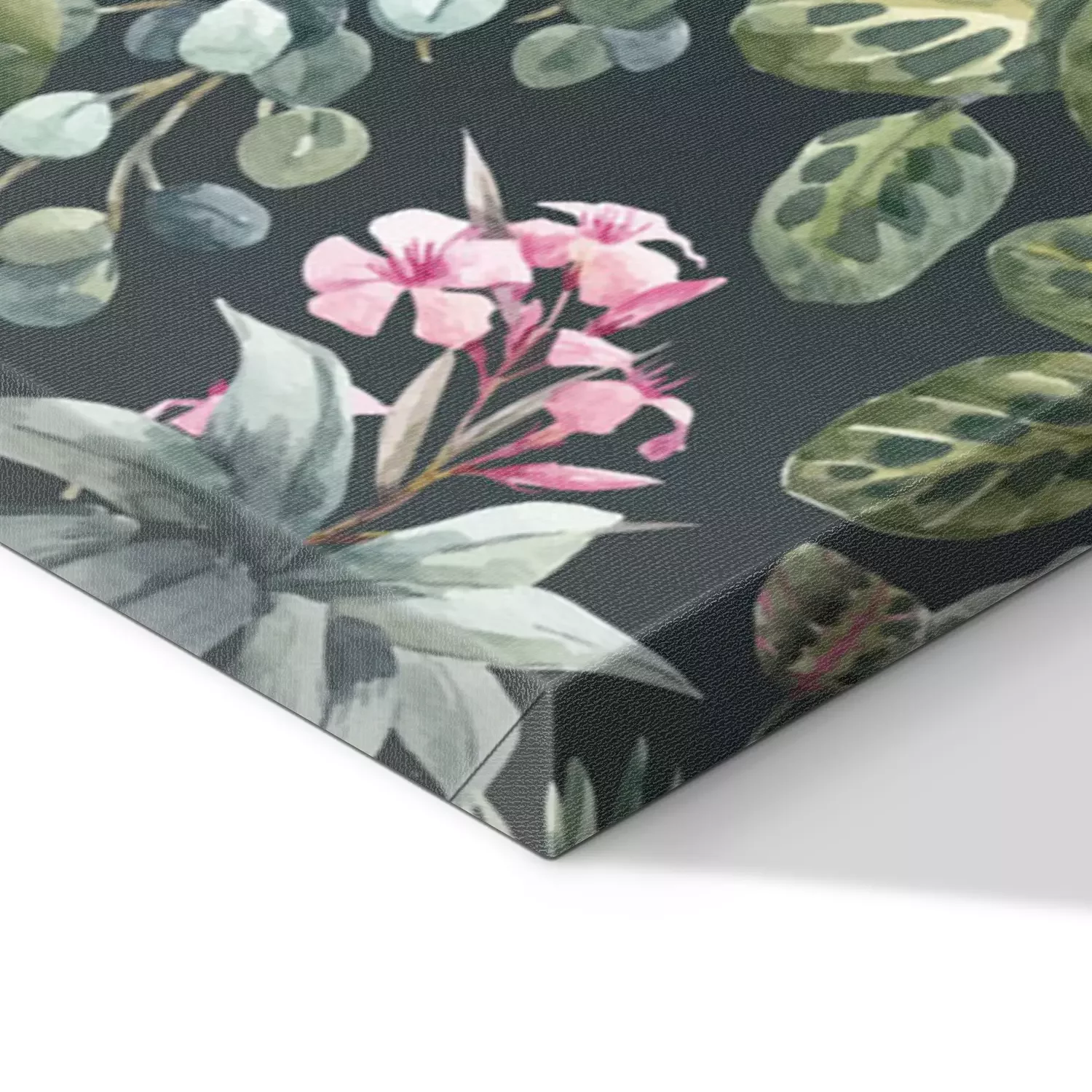Tableau  Plantes à l'aquarelle sur fond vert foncé, motif botanique
