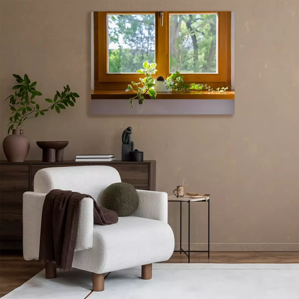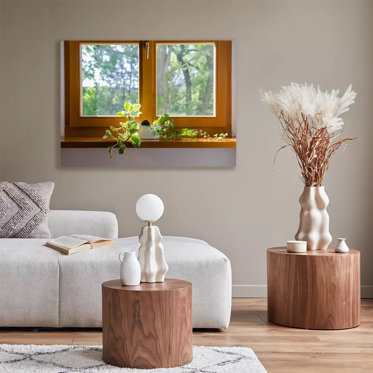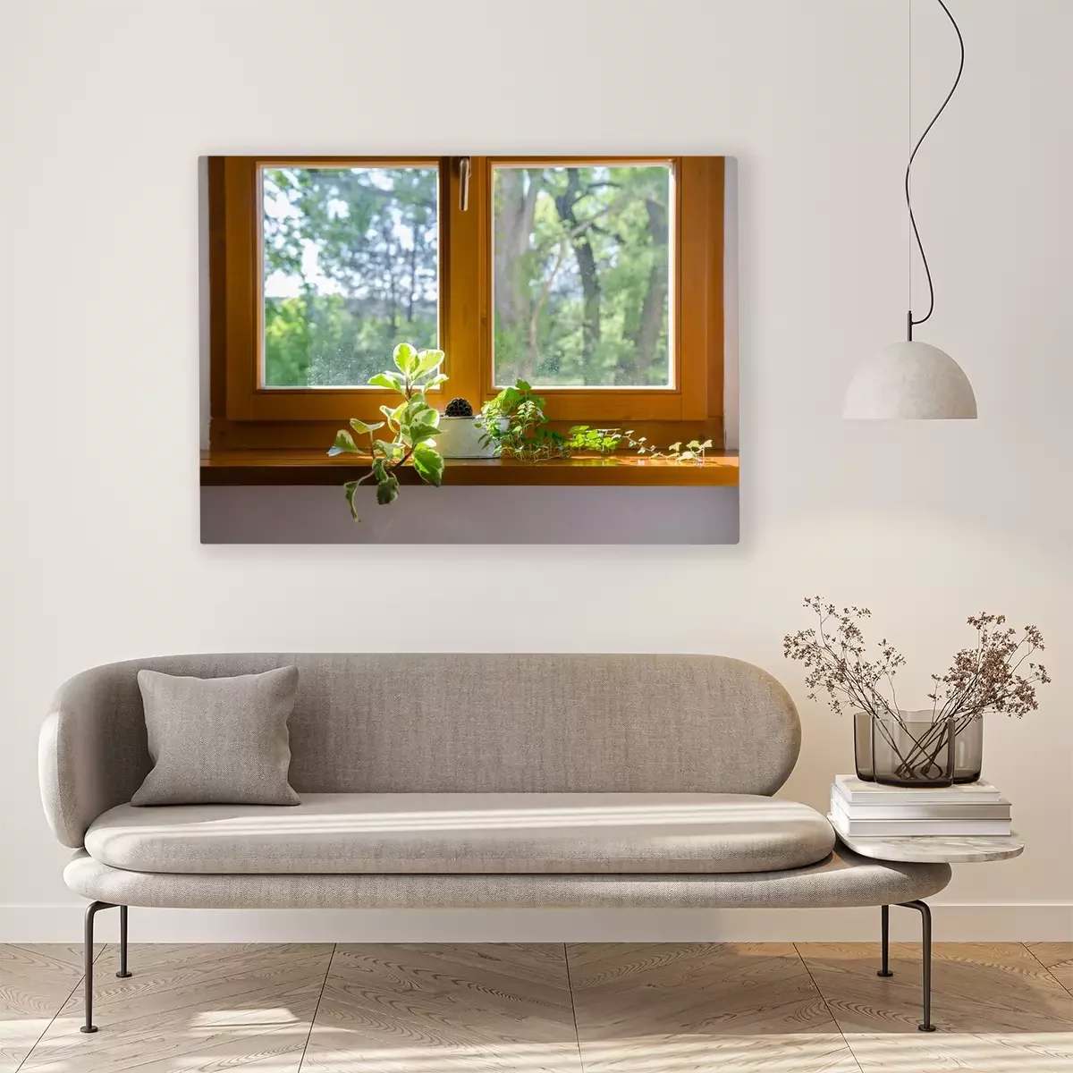 Tableau  Plantes en pot dans la fenêtre - douce lumière du soleil après-midi