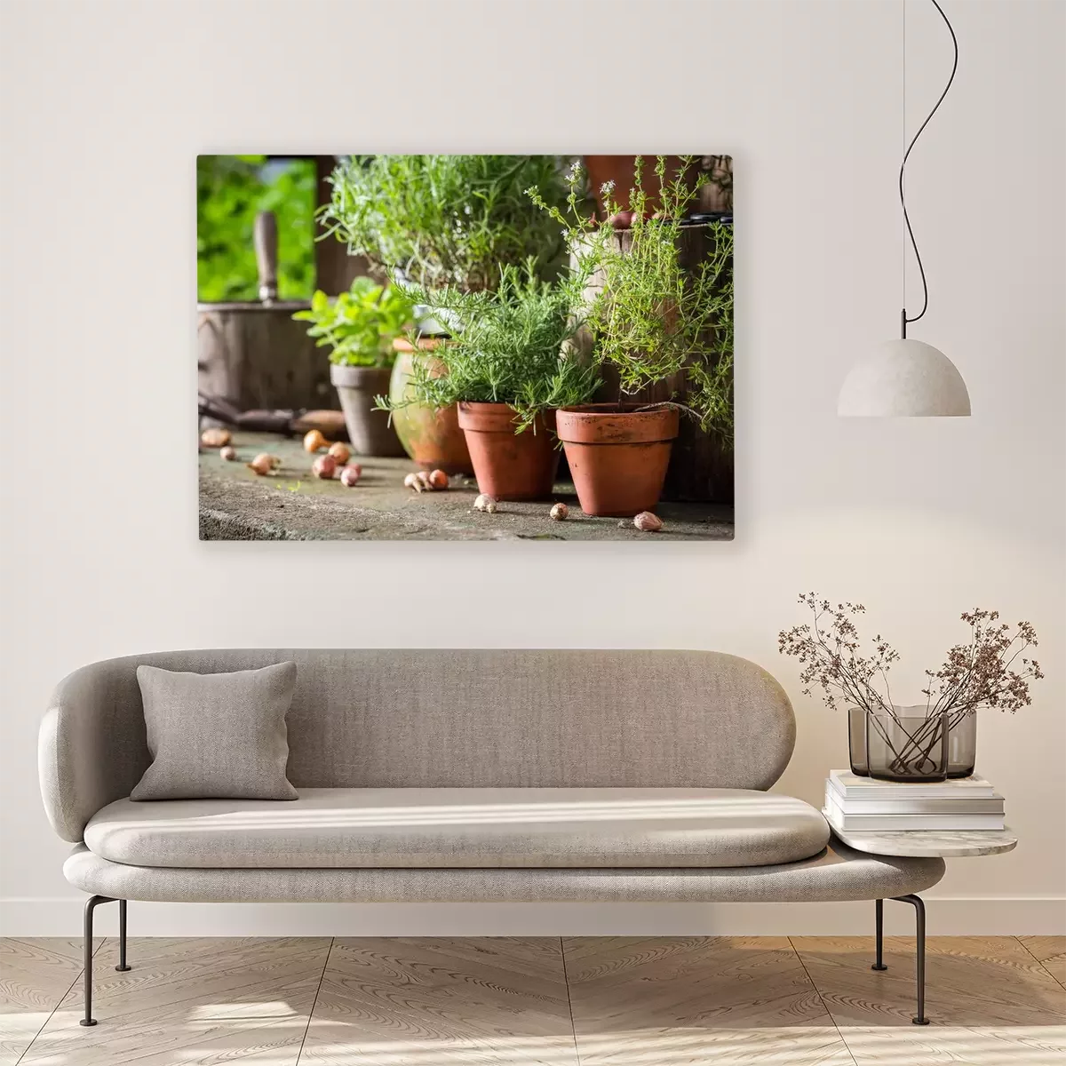 Tableau : Plantes en pot dans le jardin