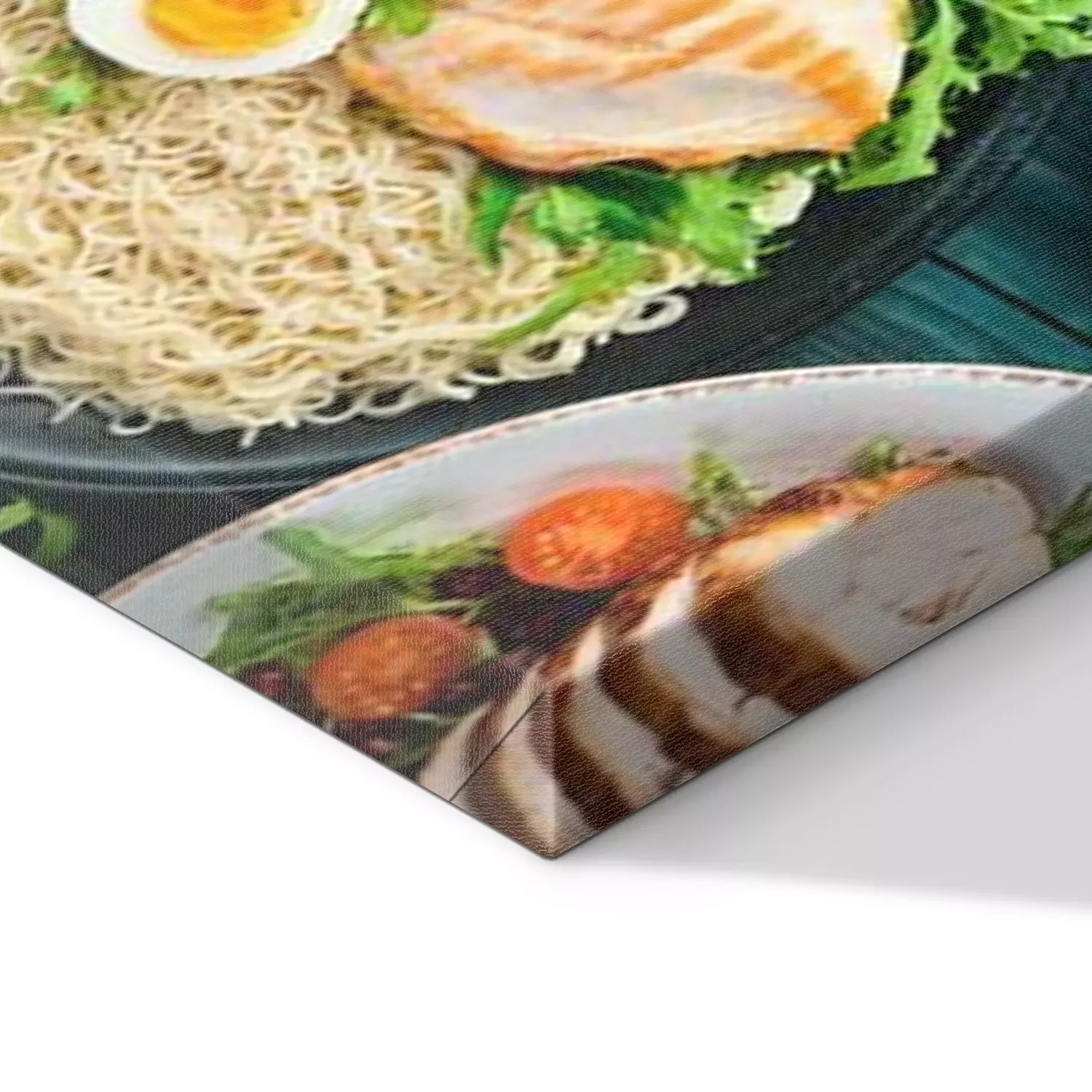 Tableau  Plats sains sur une table en bois