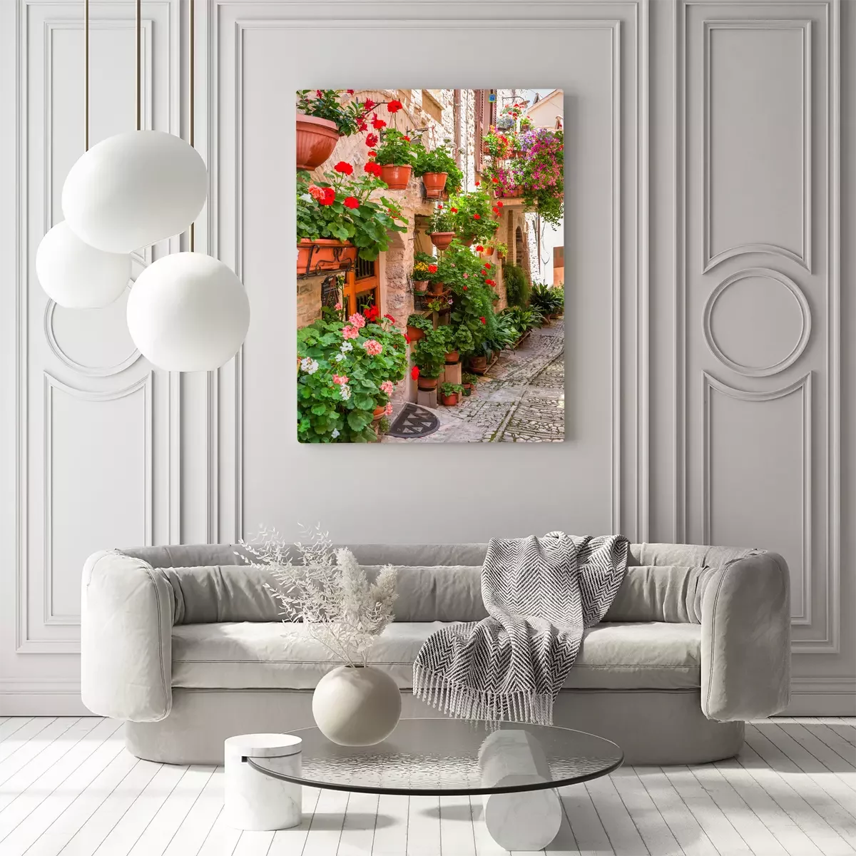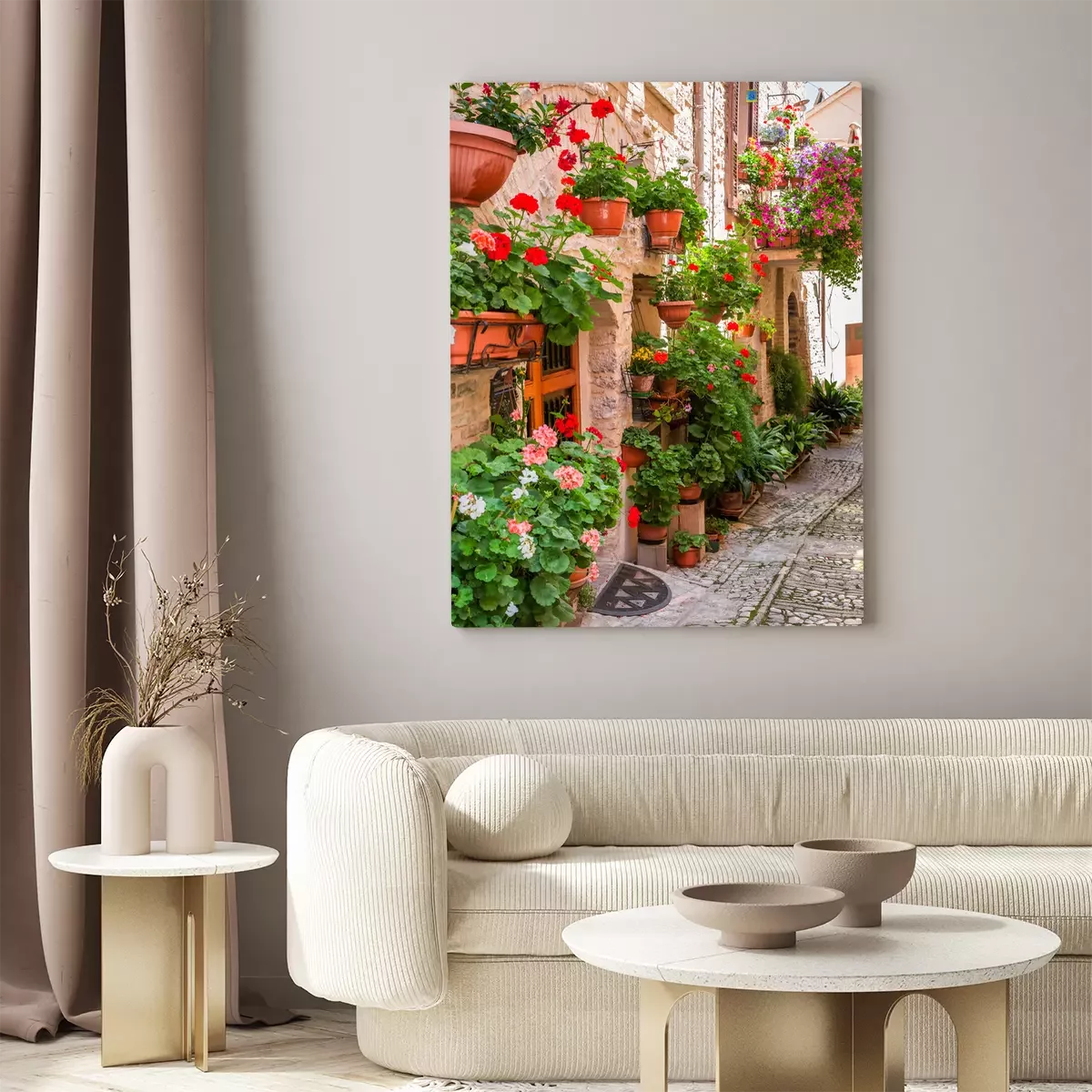 Tableau  Plein, fleur, porche, petit, ville, Italie, ombrie