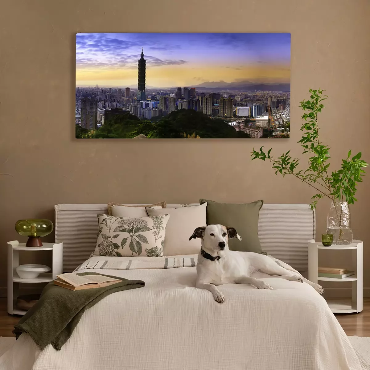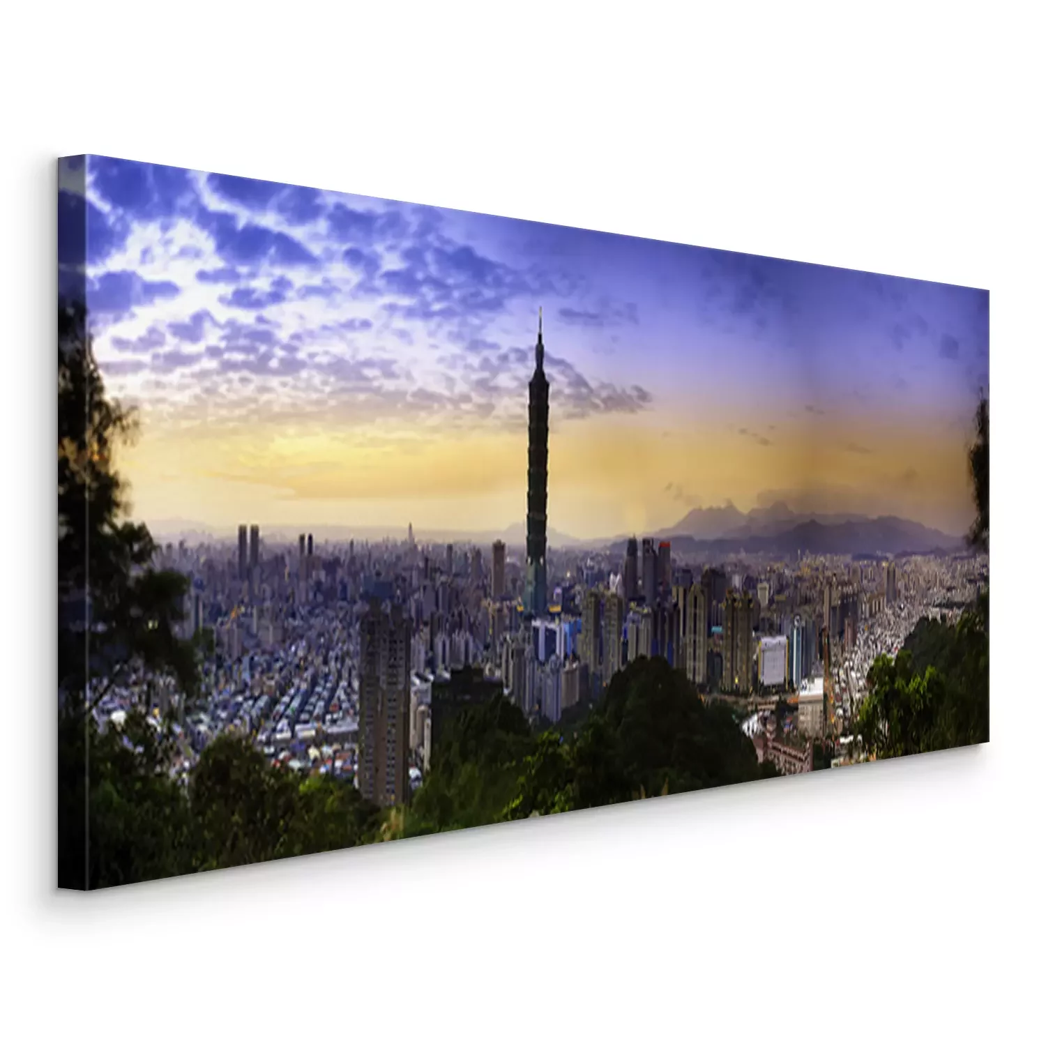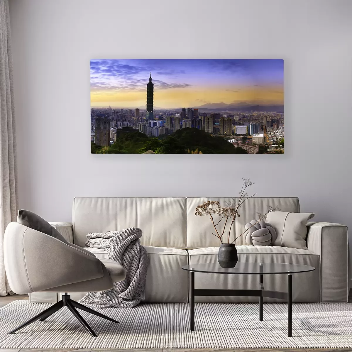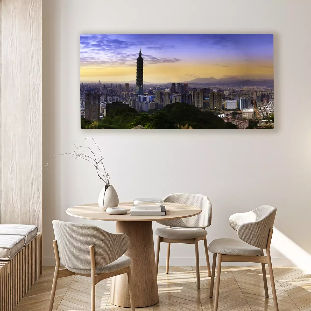 Tableau  Pleine vue coucher de soleil de la ville de Taipei