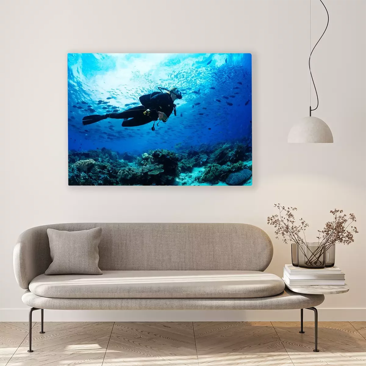 Tableau  Plongeur sur récif corallien