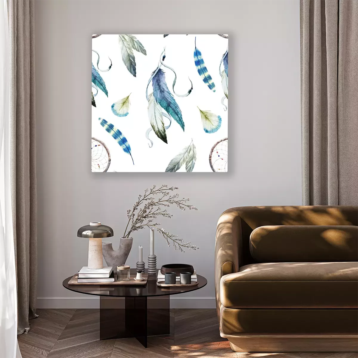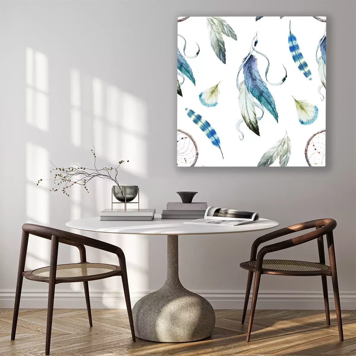 Tableau : Plumes décoratives bleues