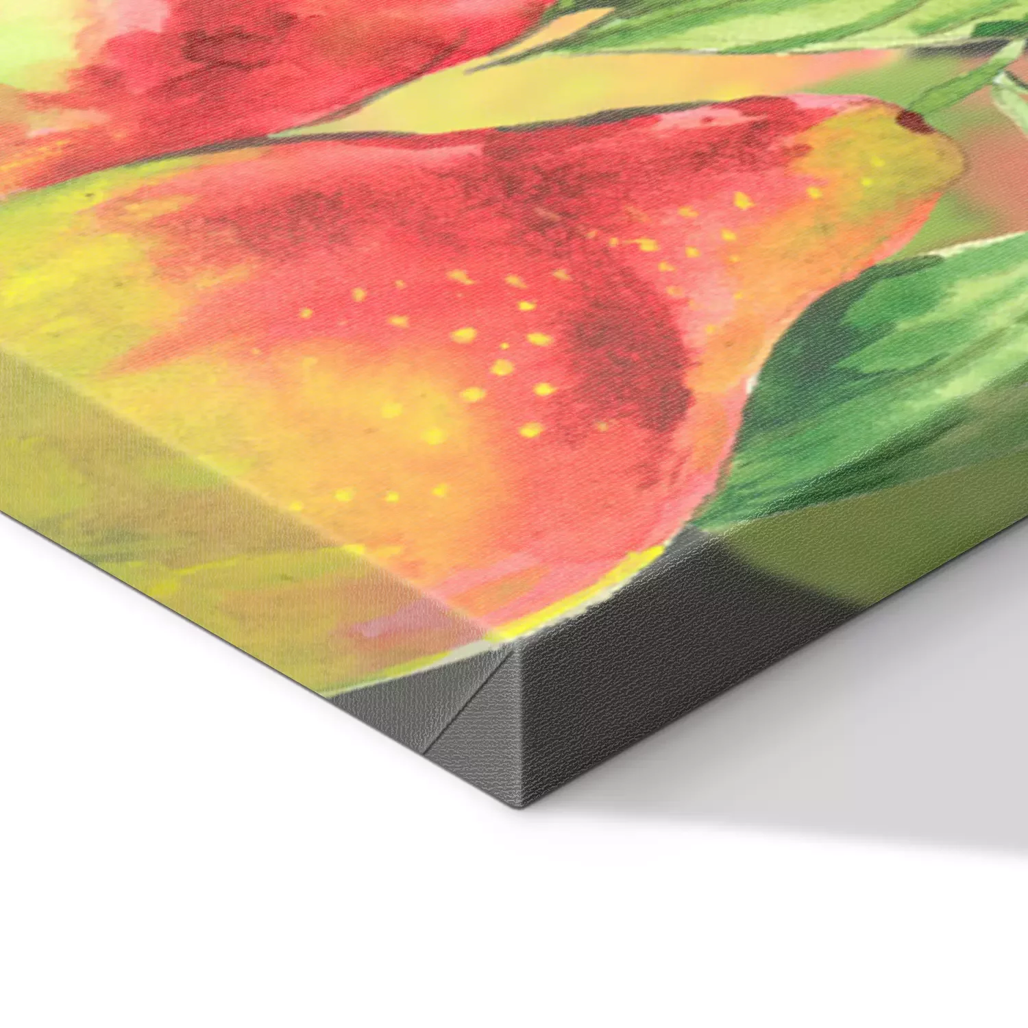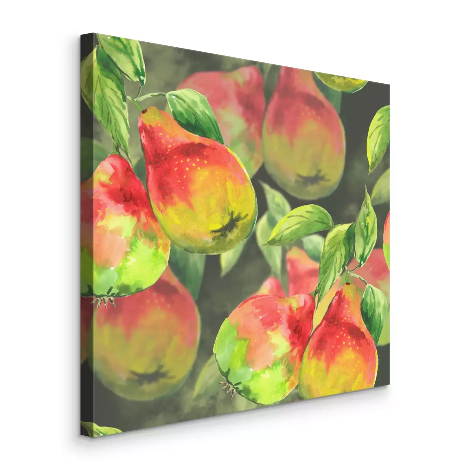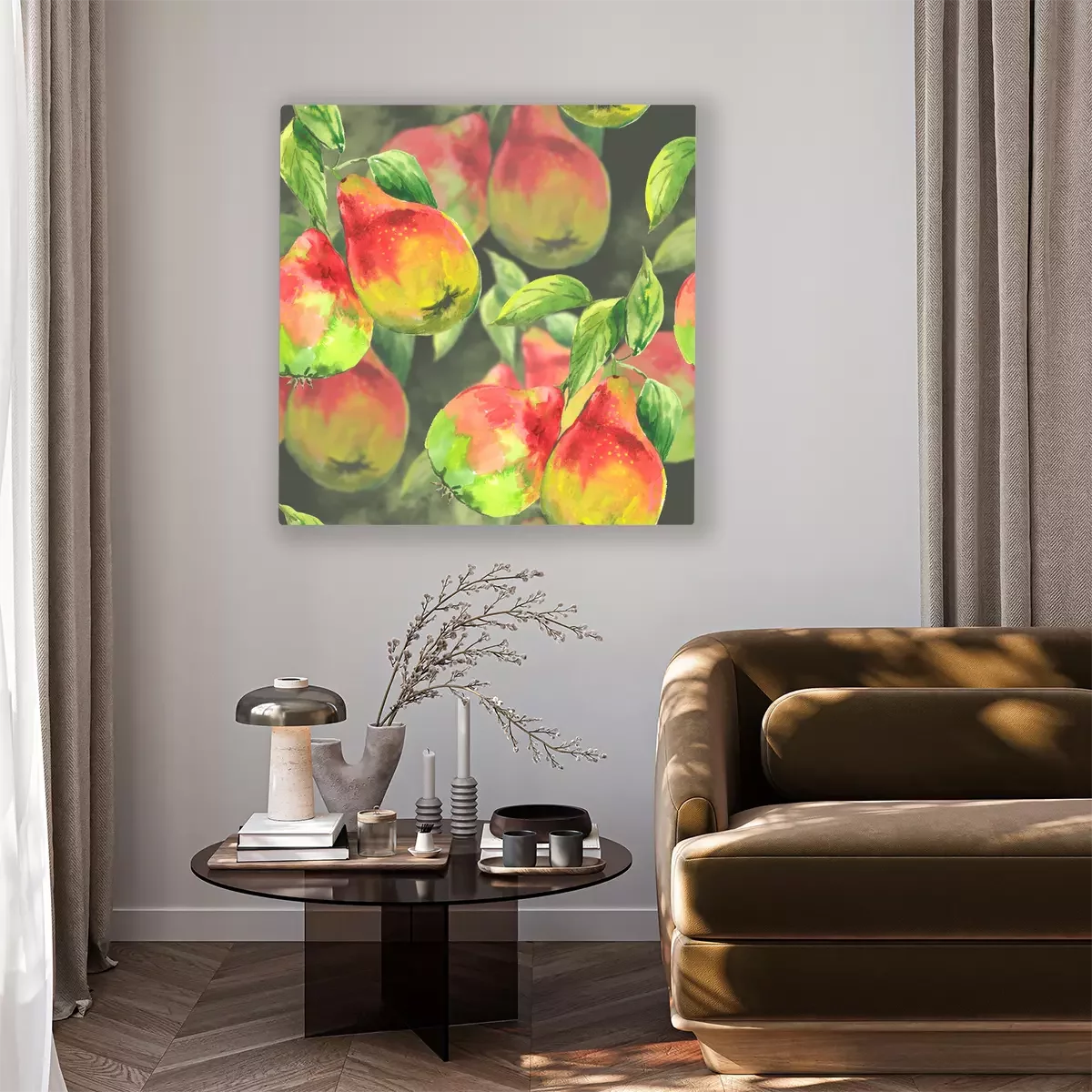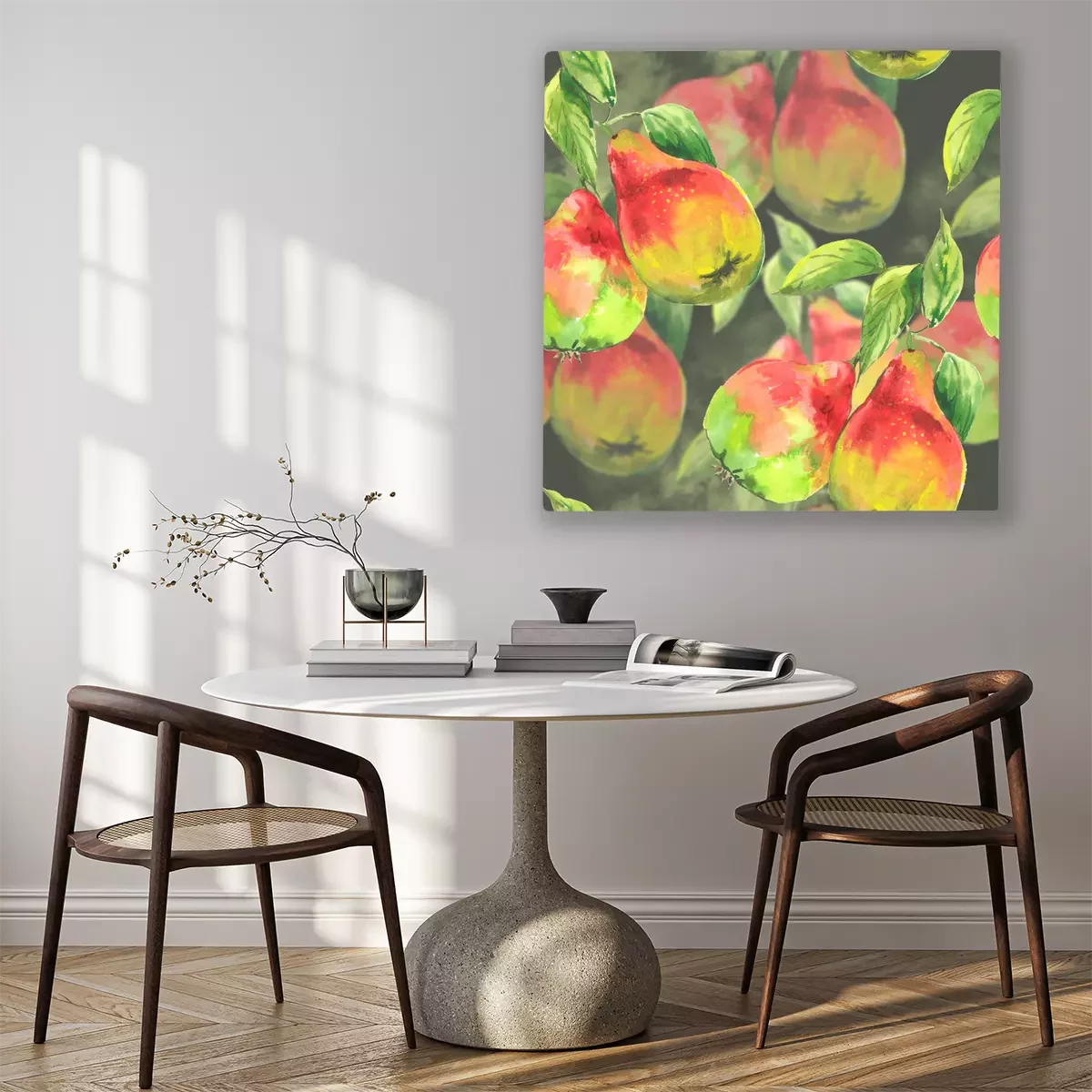 Que diriez-vous d’une telle image nature morte ? Cette superbe proposition ravira tous ceux qui apprécient les solutions décoratives classiques et éprouvées à la beauté intemporelle. Dans l'art, il s’agit d’un motif que de nombreux artistes utilisent volontiers. Concernant la décoration d’intérieur, c’est aussi une excellente solution lorsqu'on recherche une proposition qui restera belle quelles que soient l’évolution des tendances. Et c'est justement le cas de notre image poire. Le modèle que nous avons choisi ressemble à s’y méprendre à une vraie peinture, on peut même y distinguer des traces de coups de pinceau. Le caractère tridimensionnel de cette composition mérite également votre attention. Au premier plan, les fruits ont une couleur plus forte que ceux exposés à l'arrière-plan, ce qui crée une superbe impression de relief. Pour quels intérieurs conseillons-nous une telle image Fruits ? Ce tableau sera idéal pour parfaire la décoration de la cuisine. Vous pourrez l’accrocher au-dessus d'une table où se trouve un plateau rempli de pommes ou de poires, ou le placer sur une étagère où se trouvent des herbes aromatiques en pots. Les couleurs juteuses et fortes de ce modèle vous permettront d’animer votre décoration actuelle. La salle à manger pourra également profiter d’un tel modèle. En effet, le choix d’une image nature morte dans cette partie de la maison vous aidera à créer un fond idéal pour partager vos repas en famille. Si la superficie de la pièce le permet, sélectionnez une image poires en grand format. De telles couleurs vives sur une grande toile rafraîchiront instantanément le visage de votre intérieur. Ces deux pièces ne sont pas les seules à pouvoir profiter de la présence d’une telle nature morte. Puisqu'elle correspond à un motif artistique connu de tous, vous pourrez également exposer notre image poires dans le salon. Les peaux vertes et rouges de ces fruits formeront un accent esthétique qui complétera harmonieusement la décoration de la pièce sans pour autant la dominer. Une telle nature morte sera magnifique dans un salon à la décoration traditionnelle, rustique ou encore éco. Afin d’obtenir une décoration d’intérieur cosy et agréable à l’œil, misez sur un mobilier en bois de couleur chocolat qui s'accordera à merveille avec le rouge et le vert des poires.