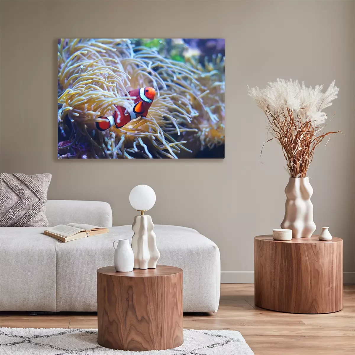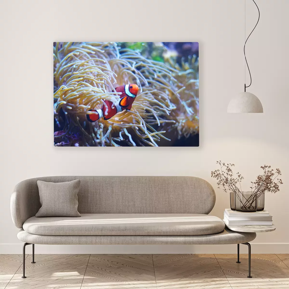 Tableau : Poisson clown rouge dans le récif de corail