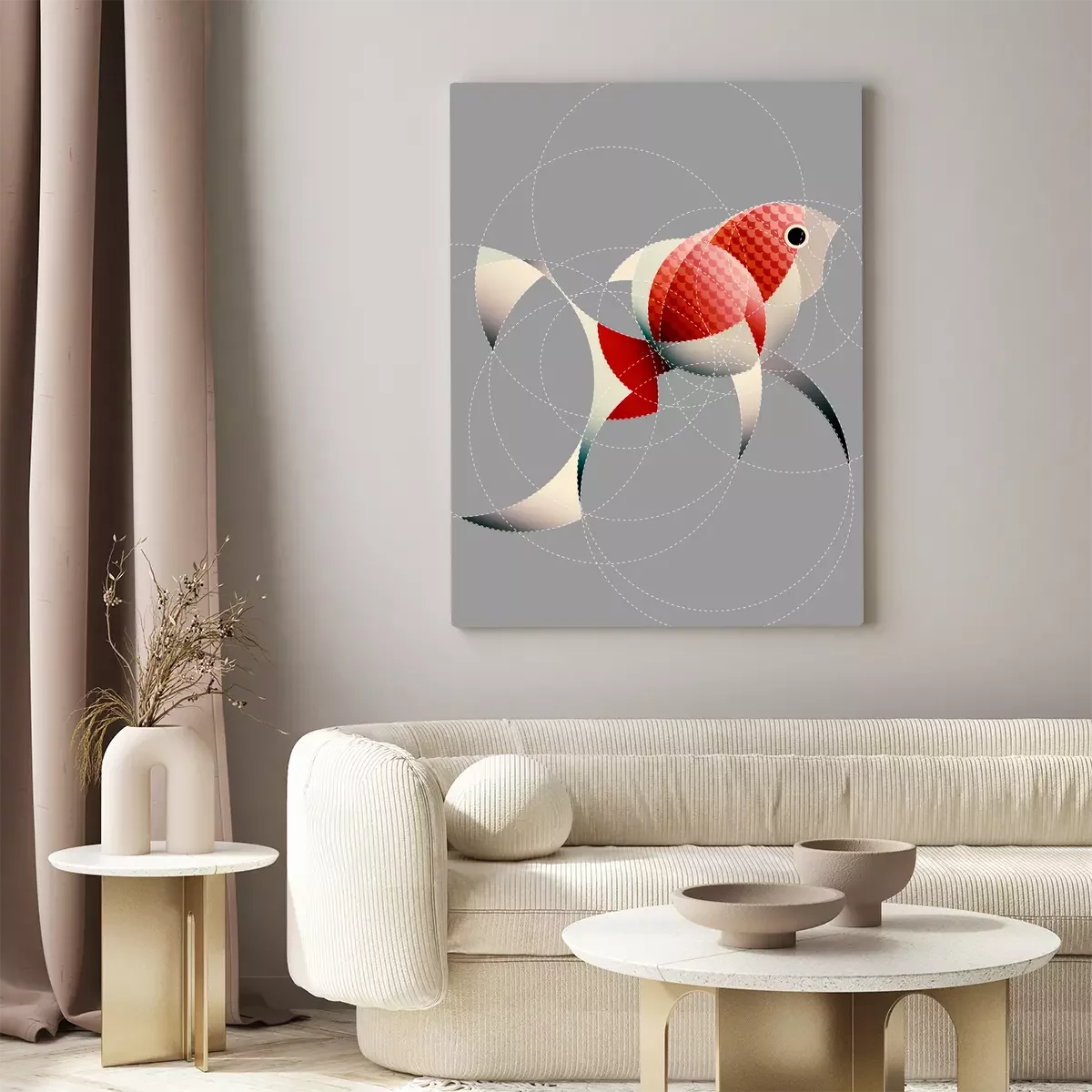Poissons en cercles dans un style abstrait