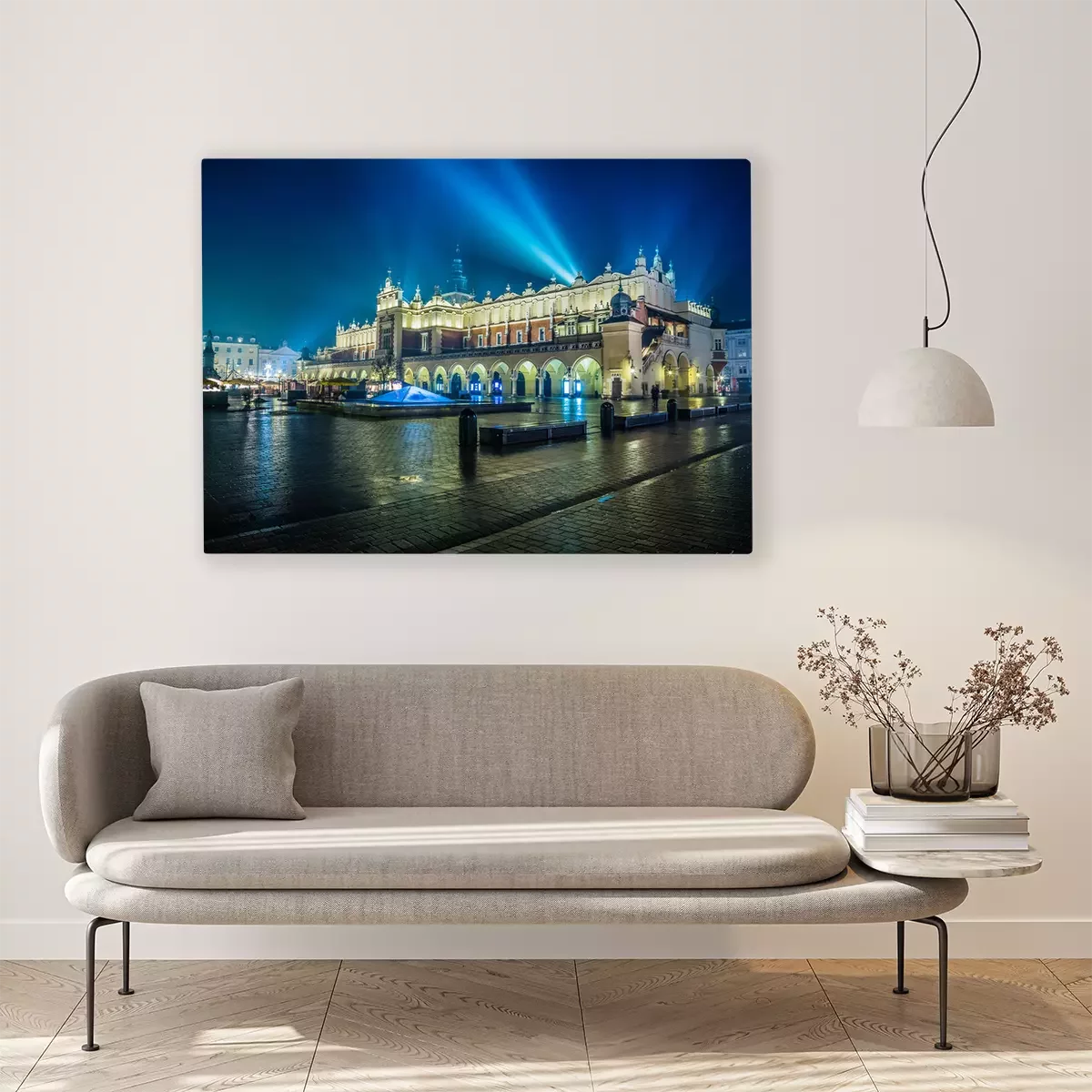 Tableau  Pologne, Cracovie. Place du Marché de nuit.