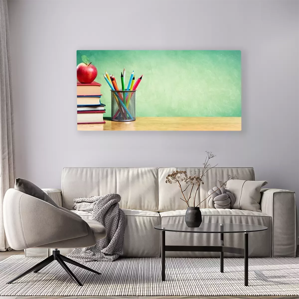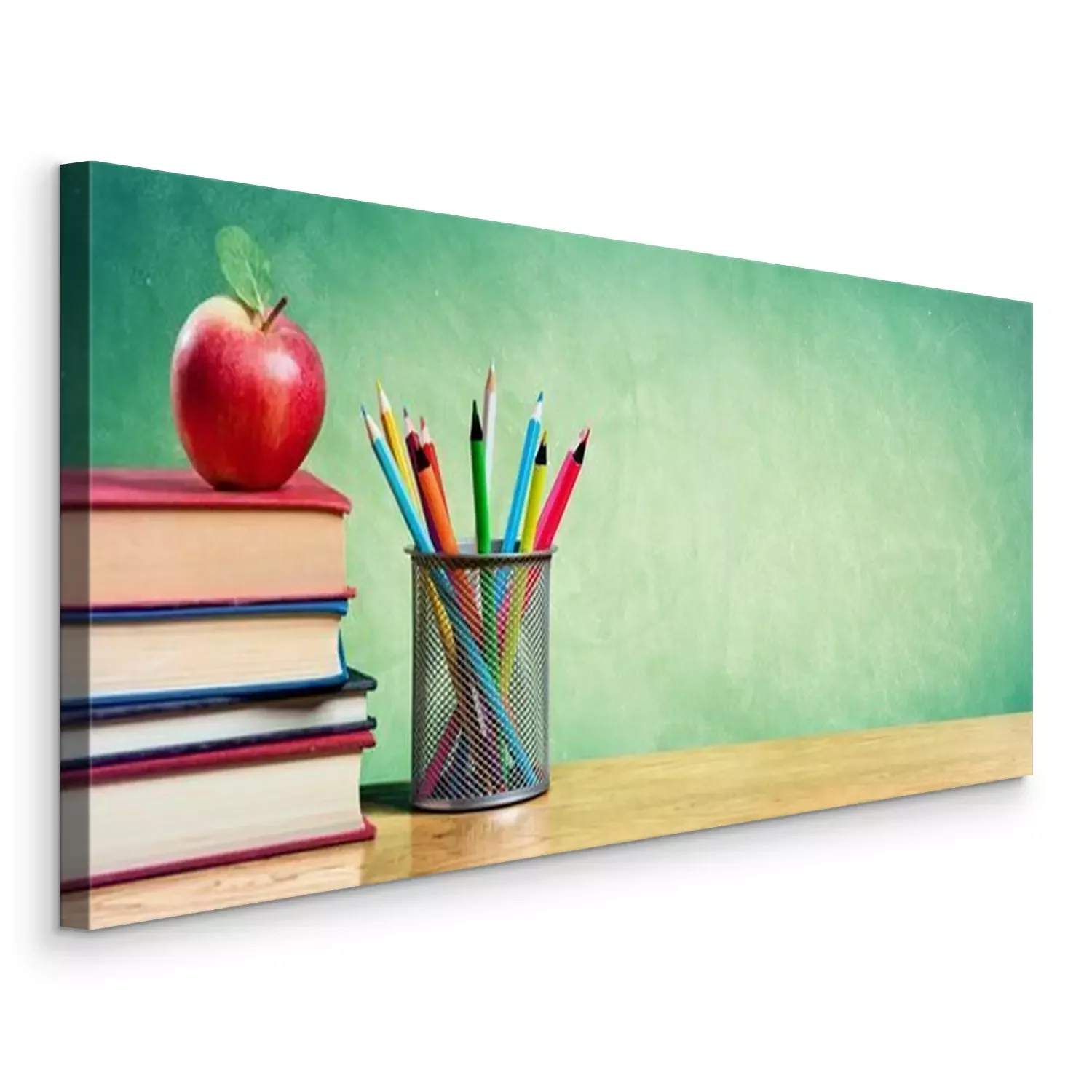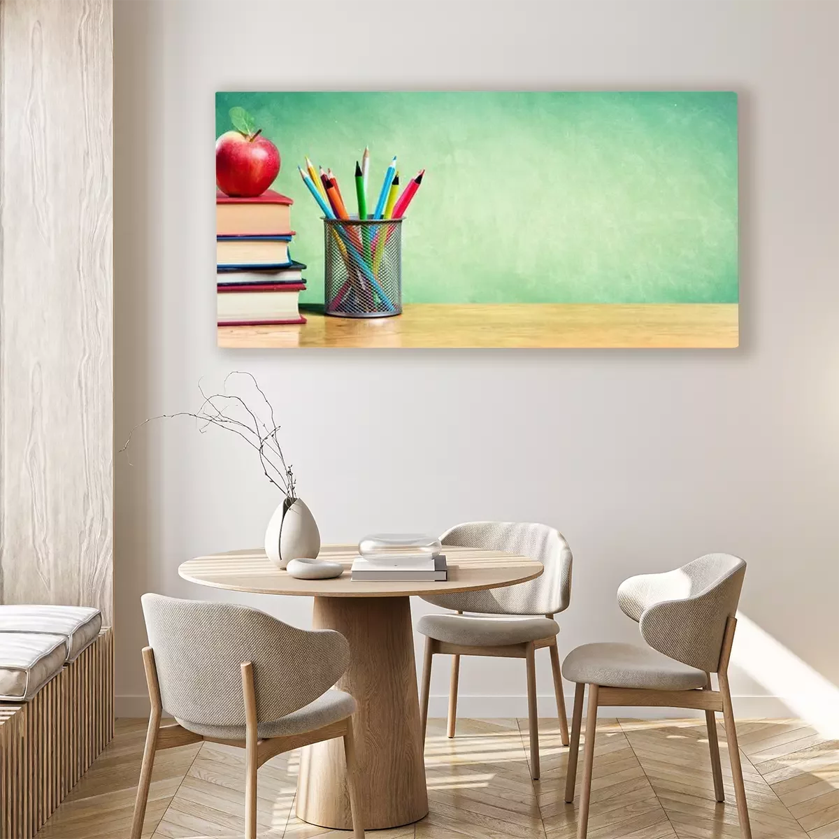 Tableau  Pomme, pile, LIVRES, crayons, vide, tableau - dos, école