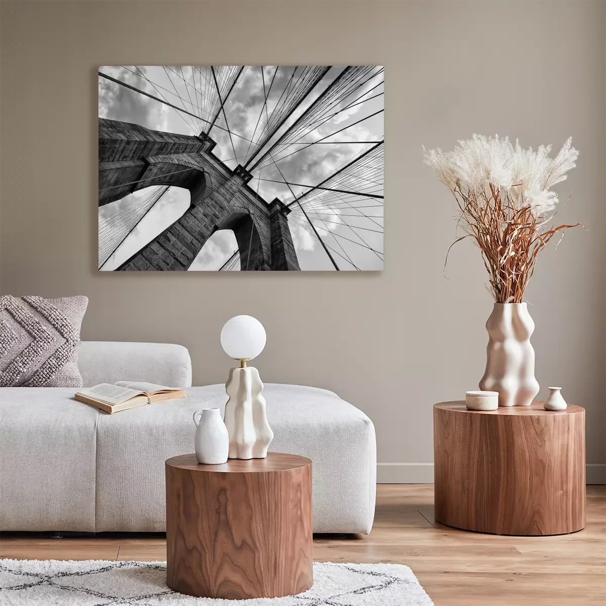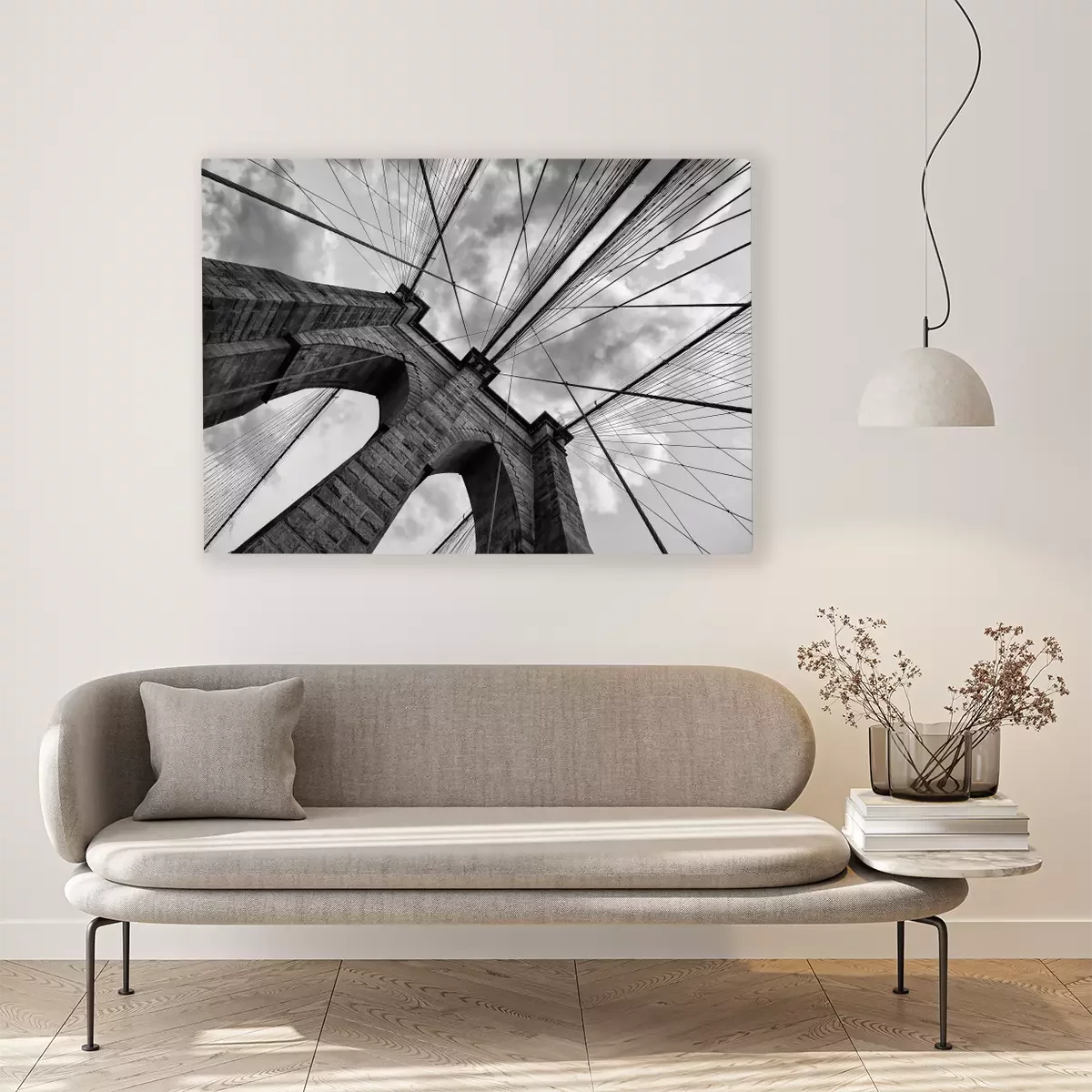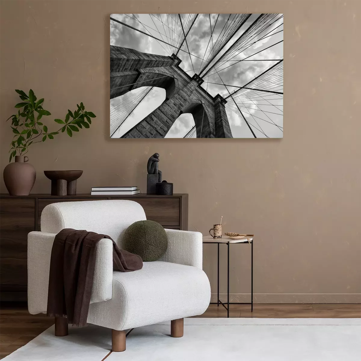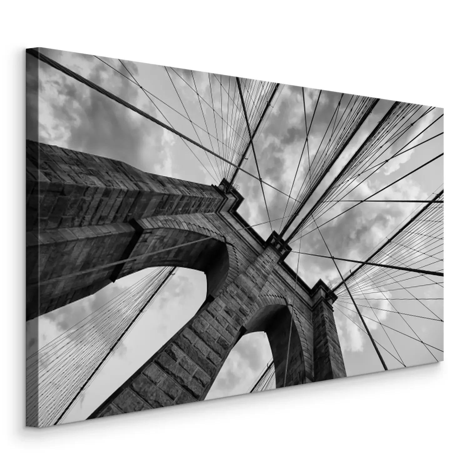 Pont de Brooklyn à New York de près détail architectural en noir et blanc intemporel