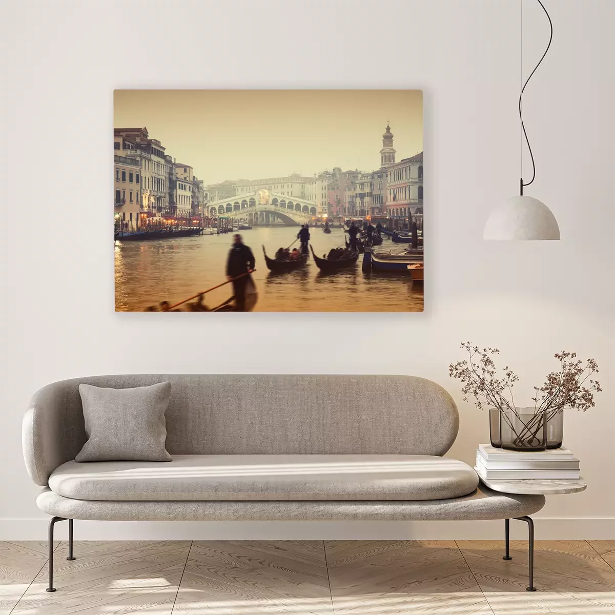 Tableau  Pont du Rialto et gondoles lors d'une soirée d'automne brumeux à Venise.