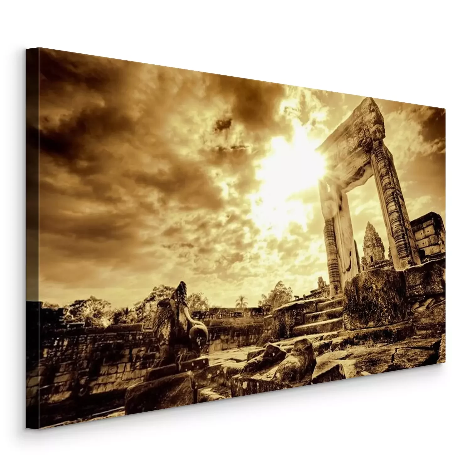Tableau : Porte Lone debout dans les ruines du temple désolées