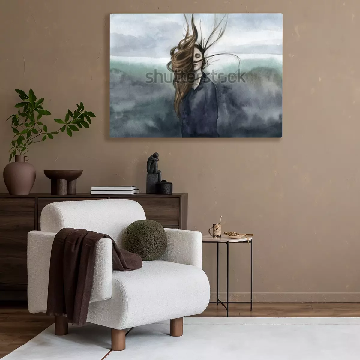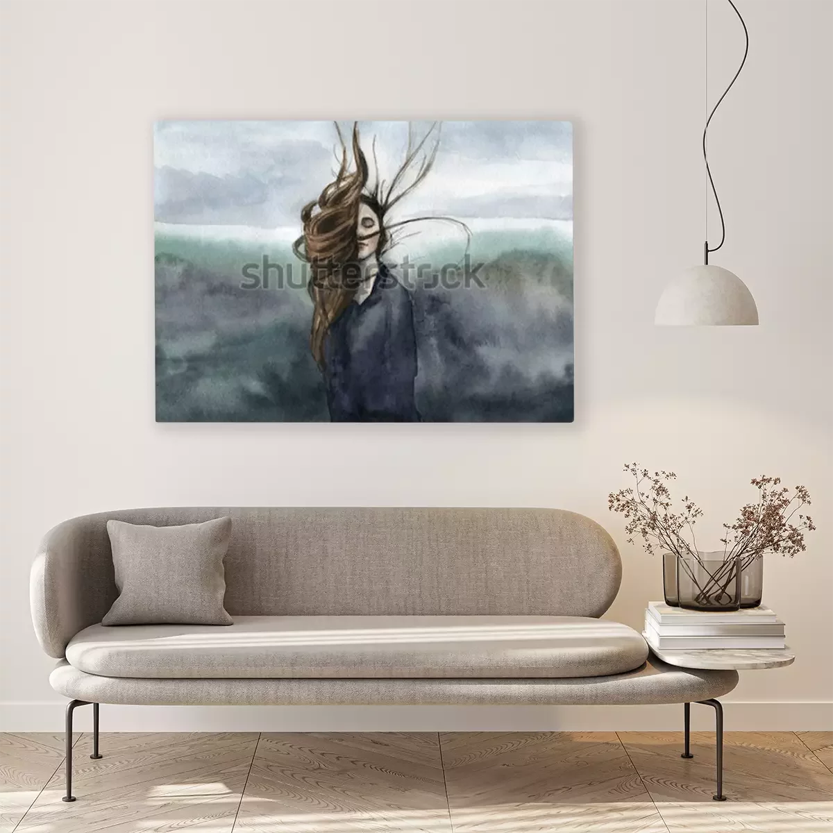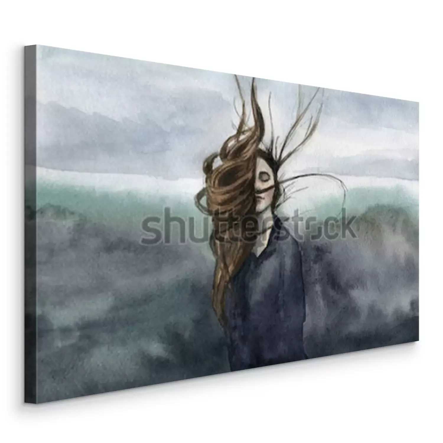 Tableau  Portrait à l'aquarelle d'une femme dans le vent