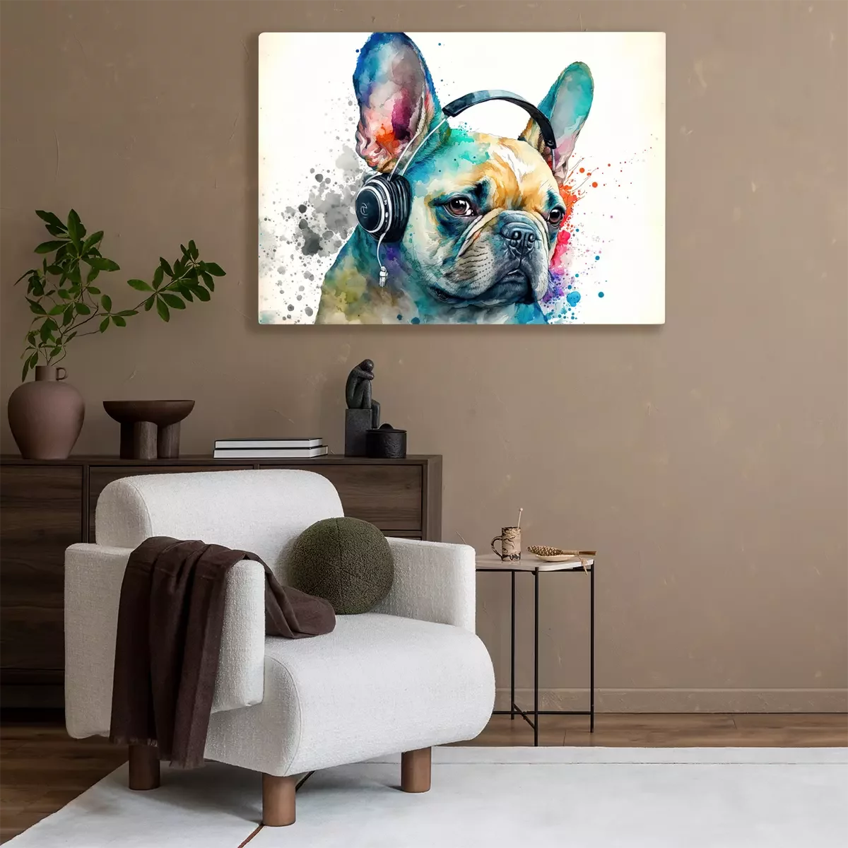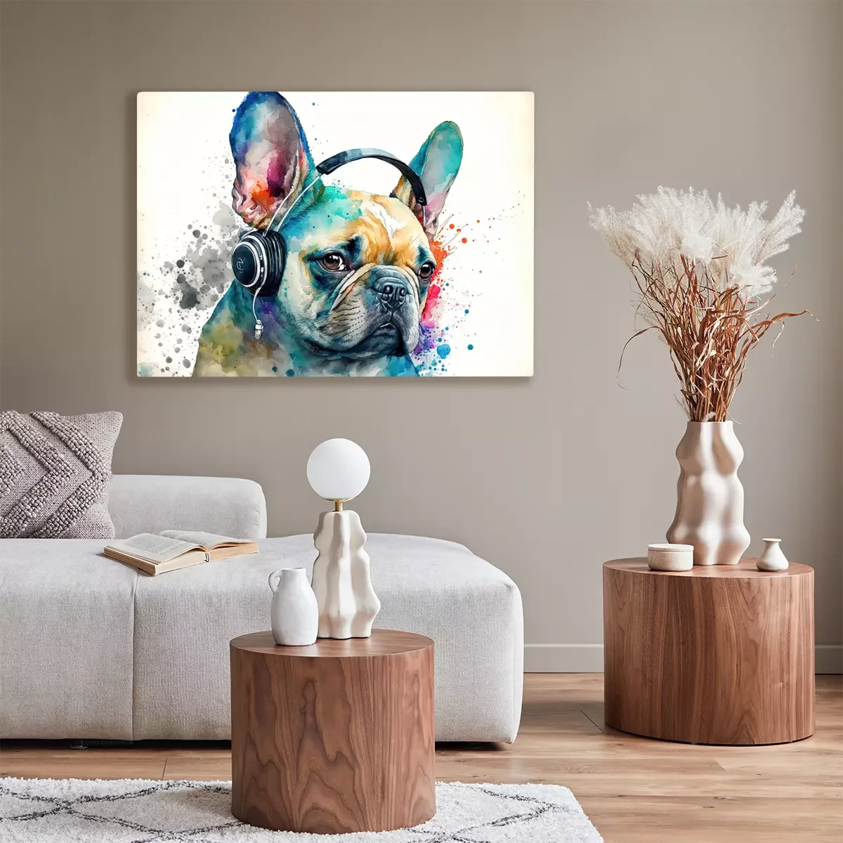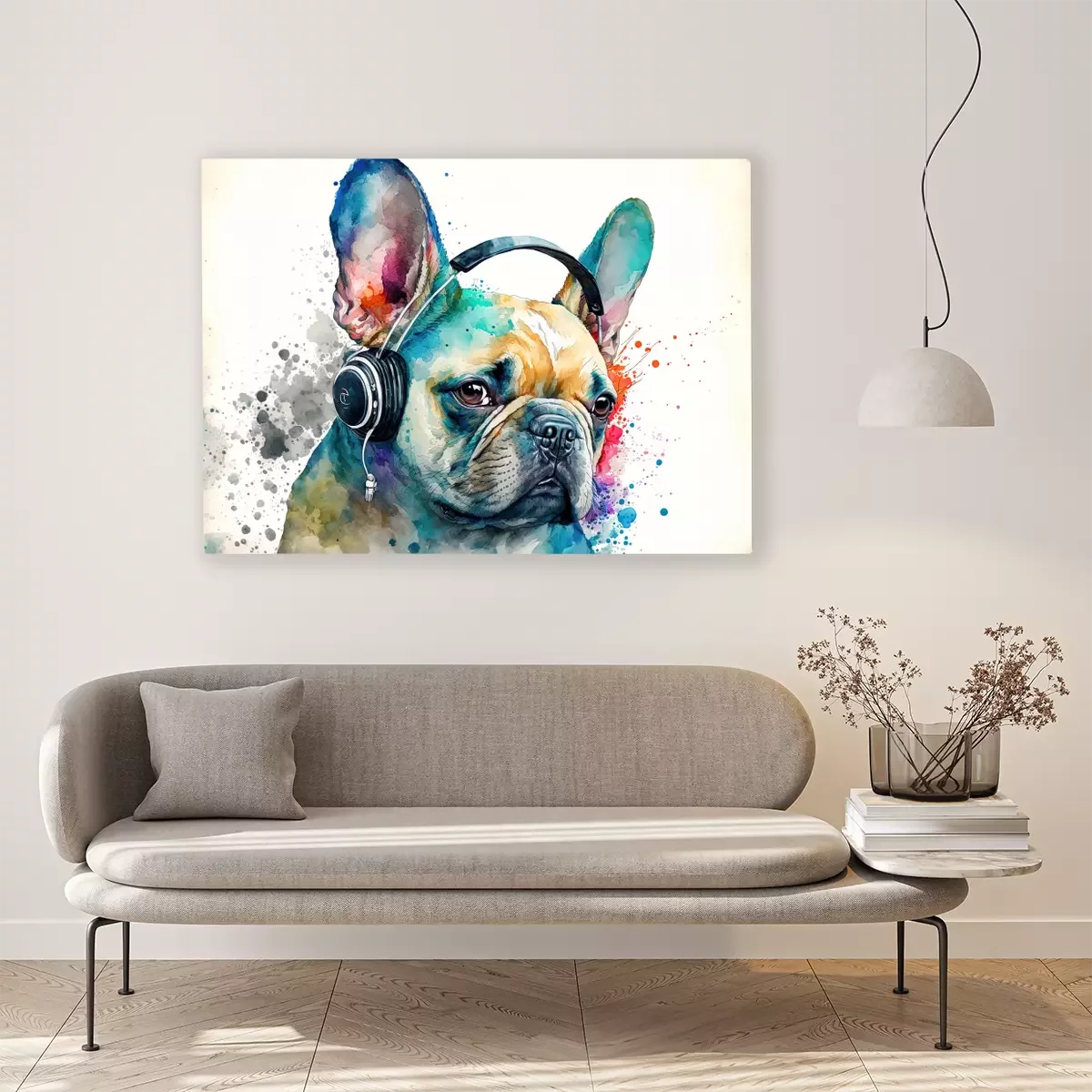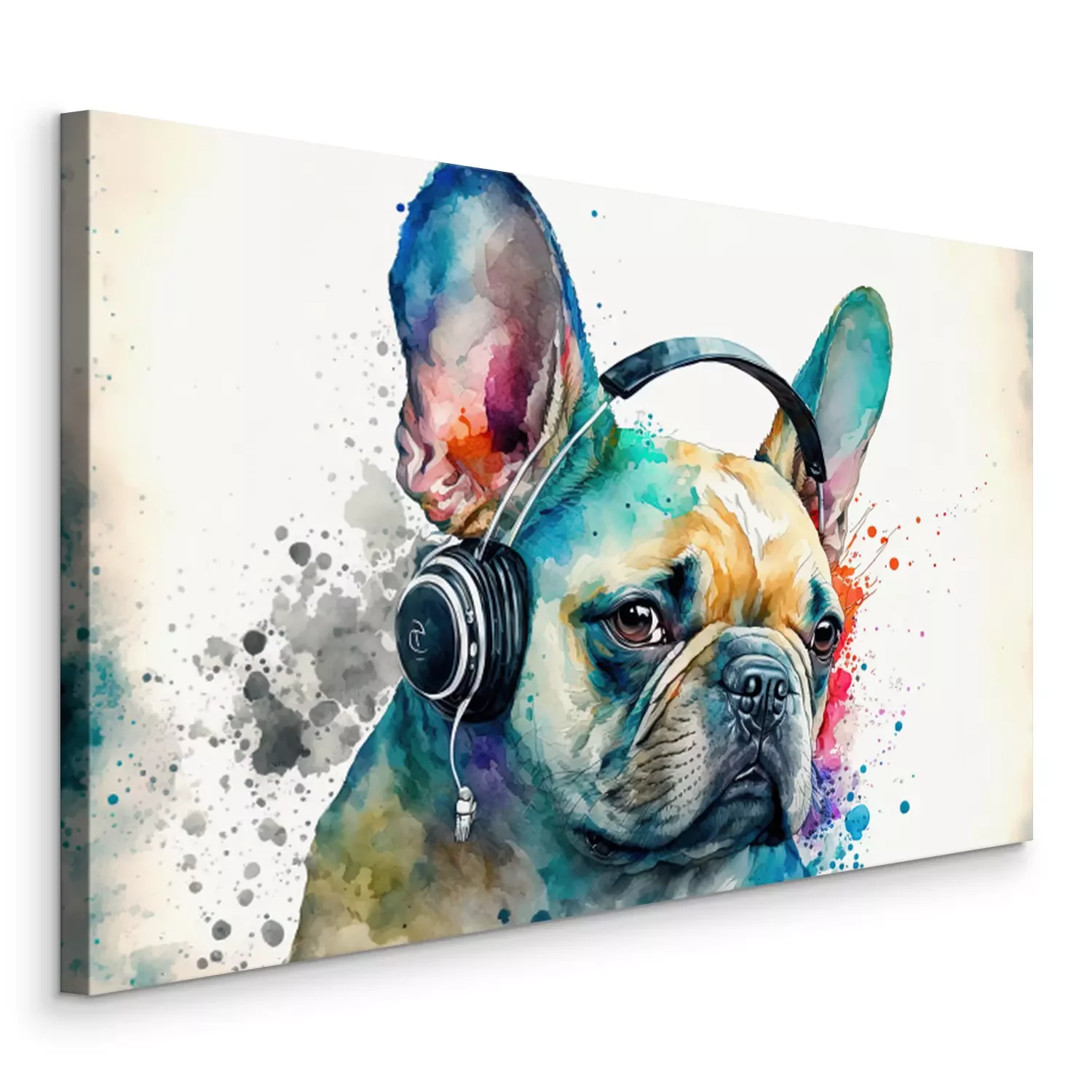 Tableau : Portrait aquarelle de Bouledogue Français coloré
