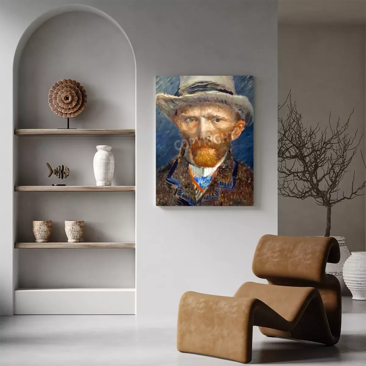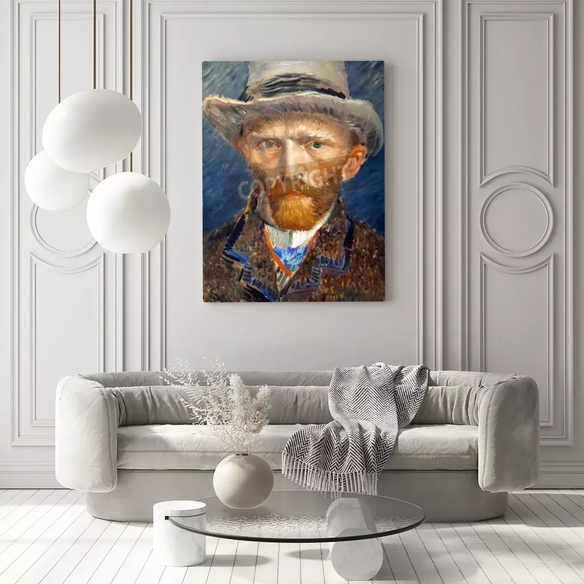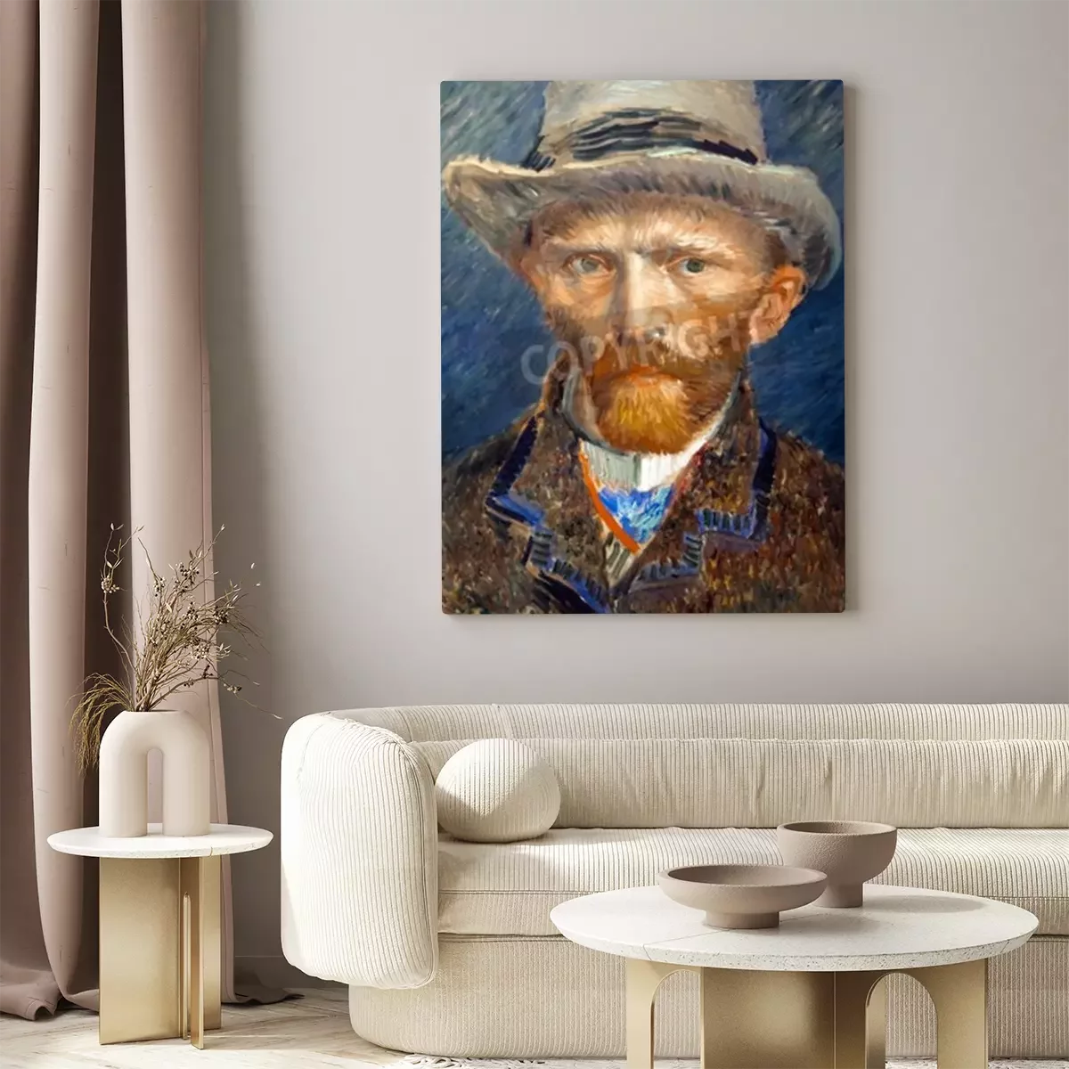 Tableau : Portrait artwork of famous painter Vincent van Gogh. Close up painting in Rijsmuseum in Amsterdam city, Holland