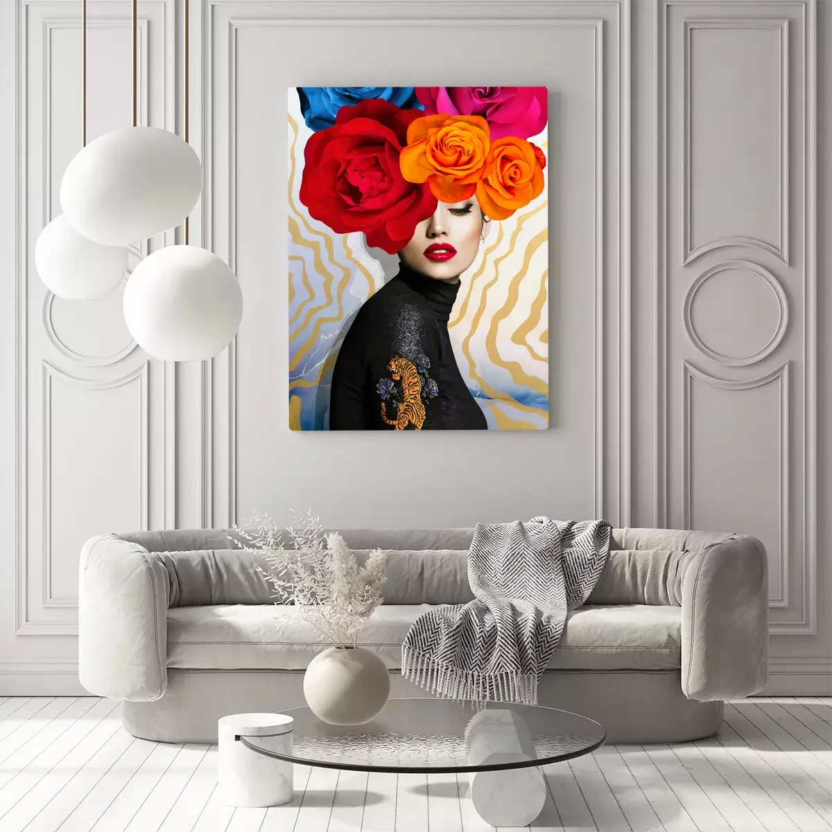 Portrait coloré d'une femme avec des fleurs sur la tête